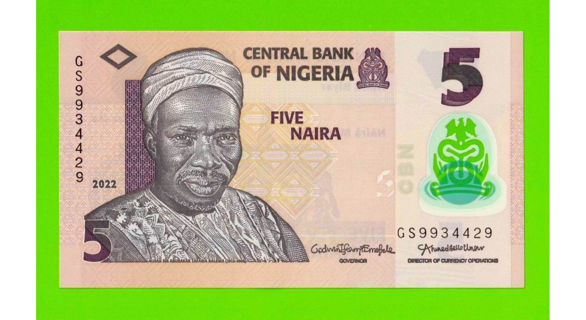 Нигерия - 5 найра - 2022 - полимер - UNC!!!