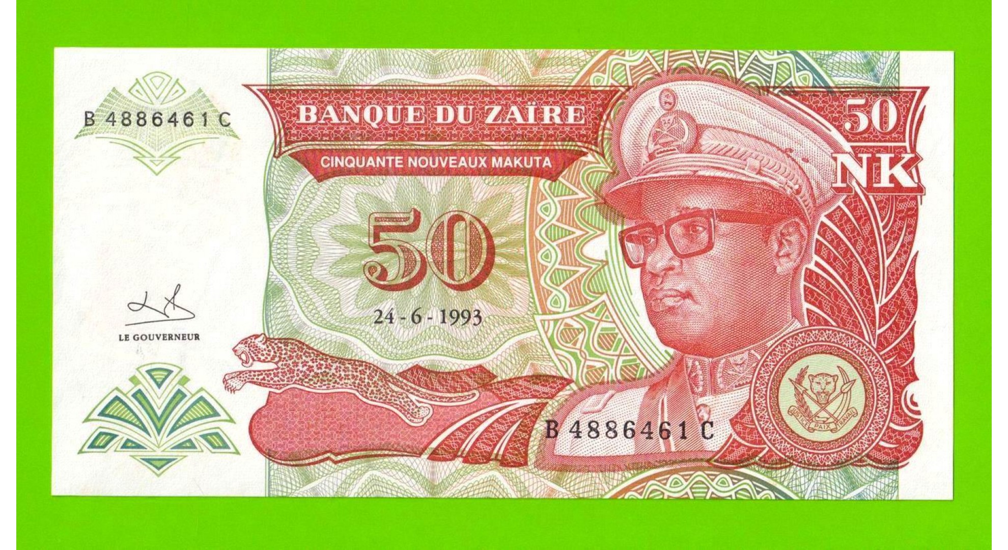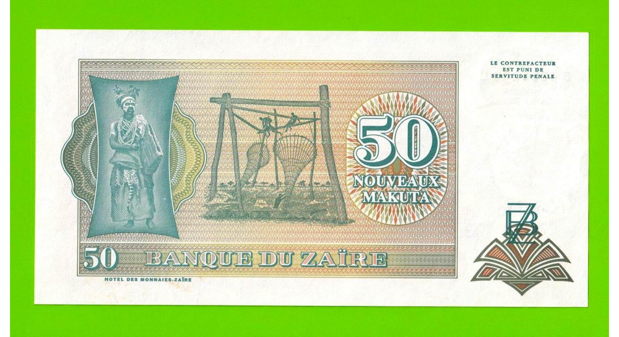 Заир - 50 новых макута - 1993 - небольшие пятна - aUNC!!!