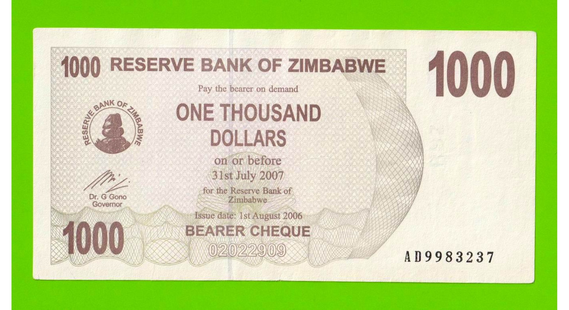 Зимбабве - 1000 долларов - 2006 (AD)
