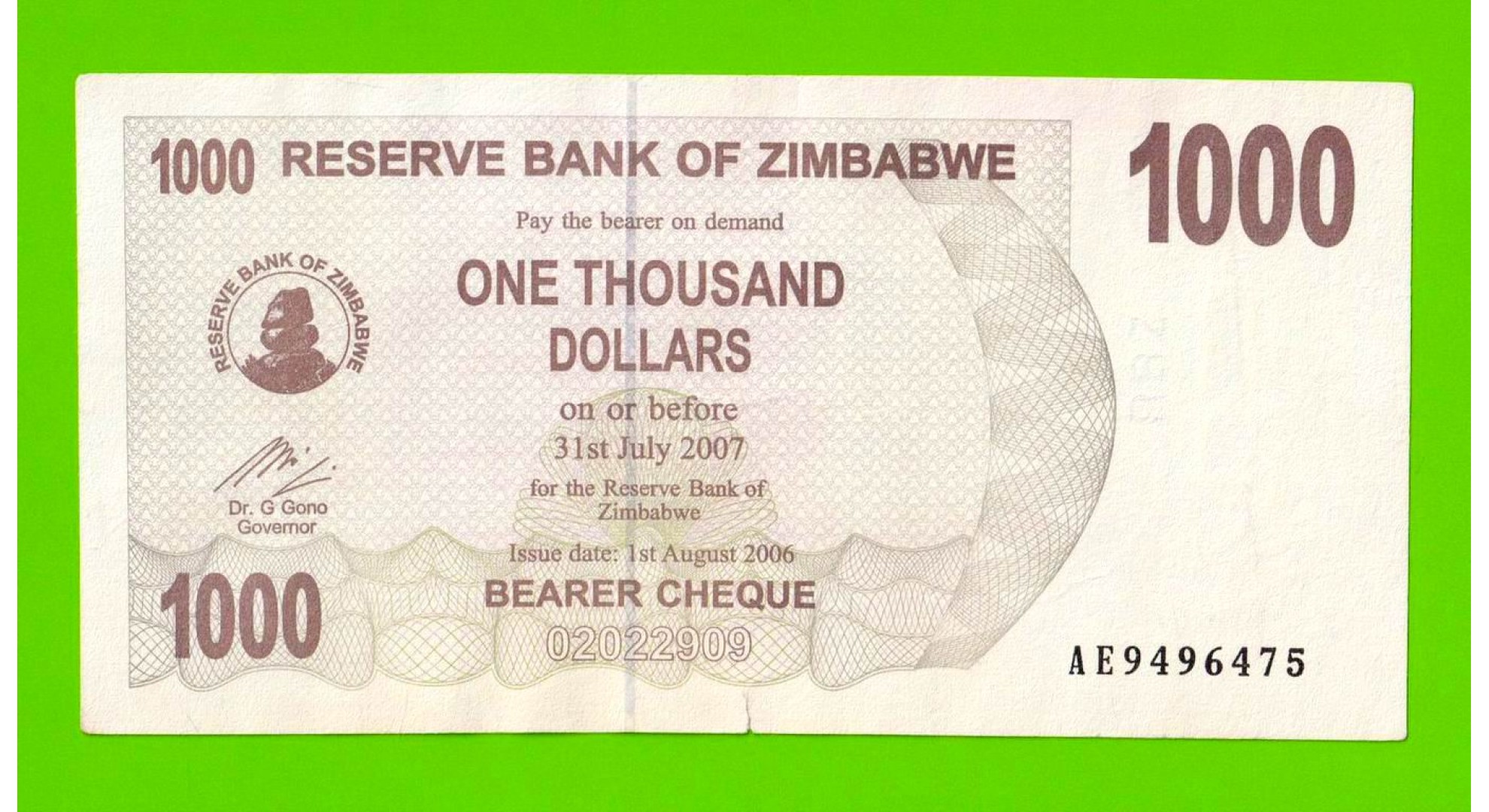 Зимбабве - 1000 долларов - 2006 (AE)