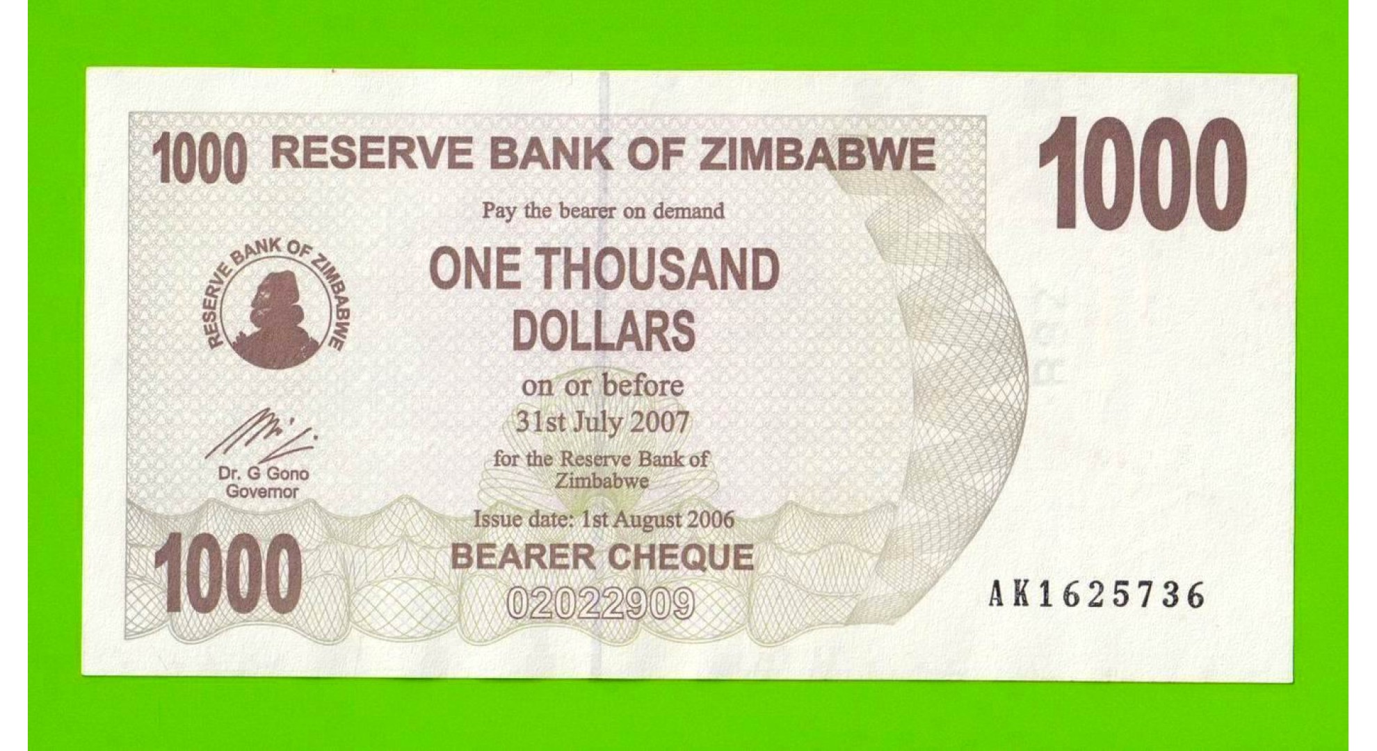 Зимбабве - 1000 долларов - 2006 (AK)