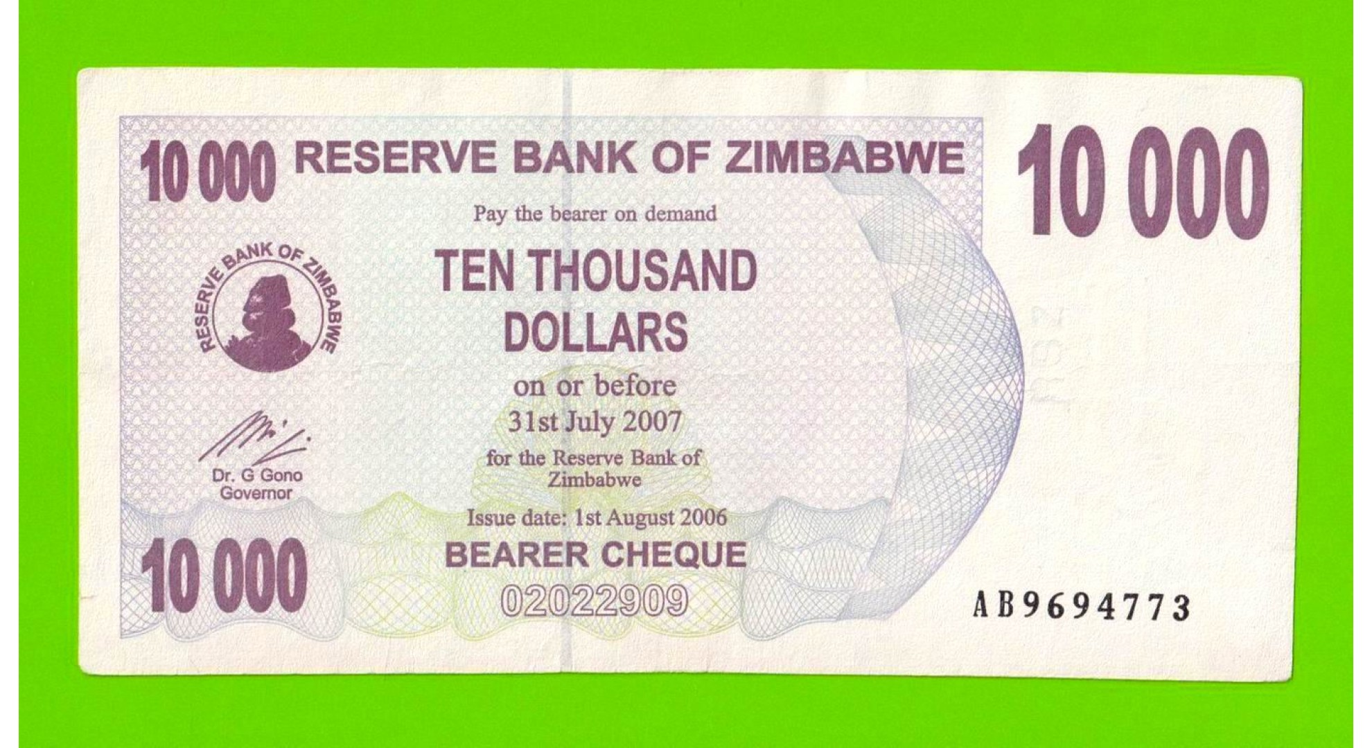 Зимбабве - 10000 долларов - 2006 (AB)