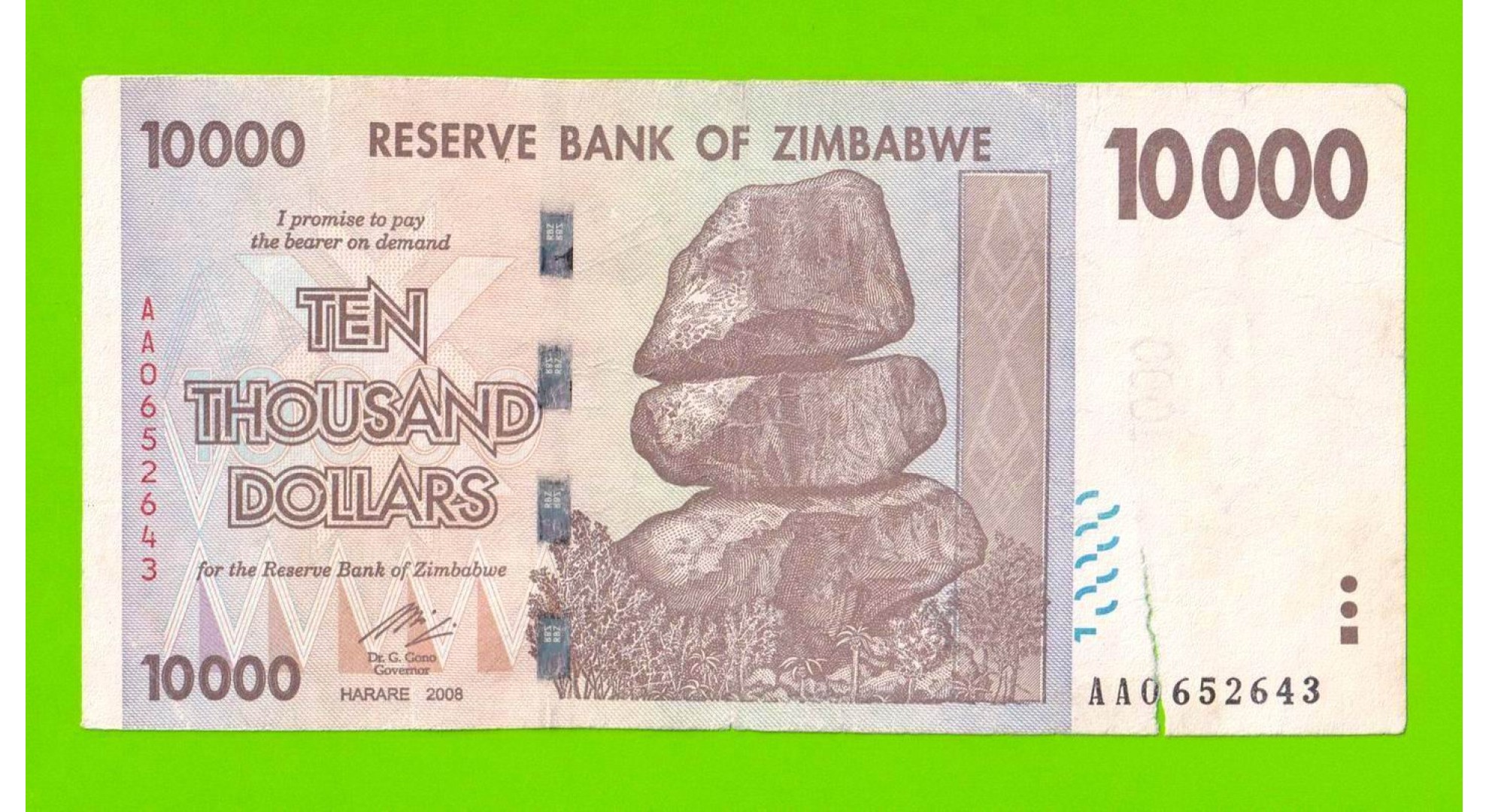 Зимбабве - 10000 долларов - 2008 (AA)