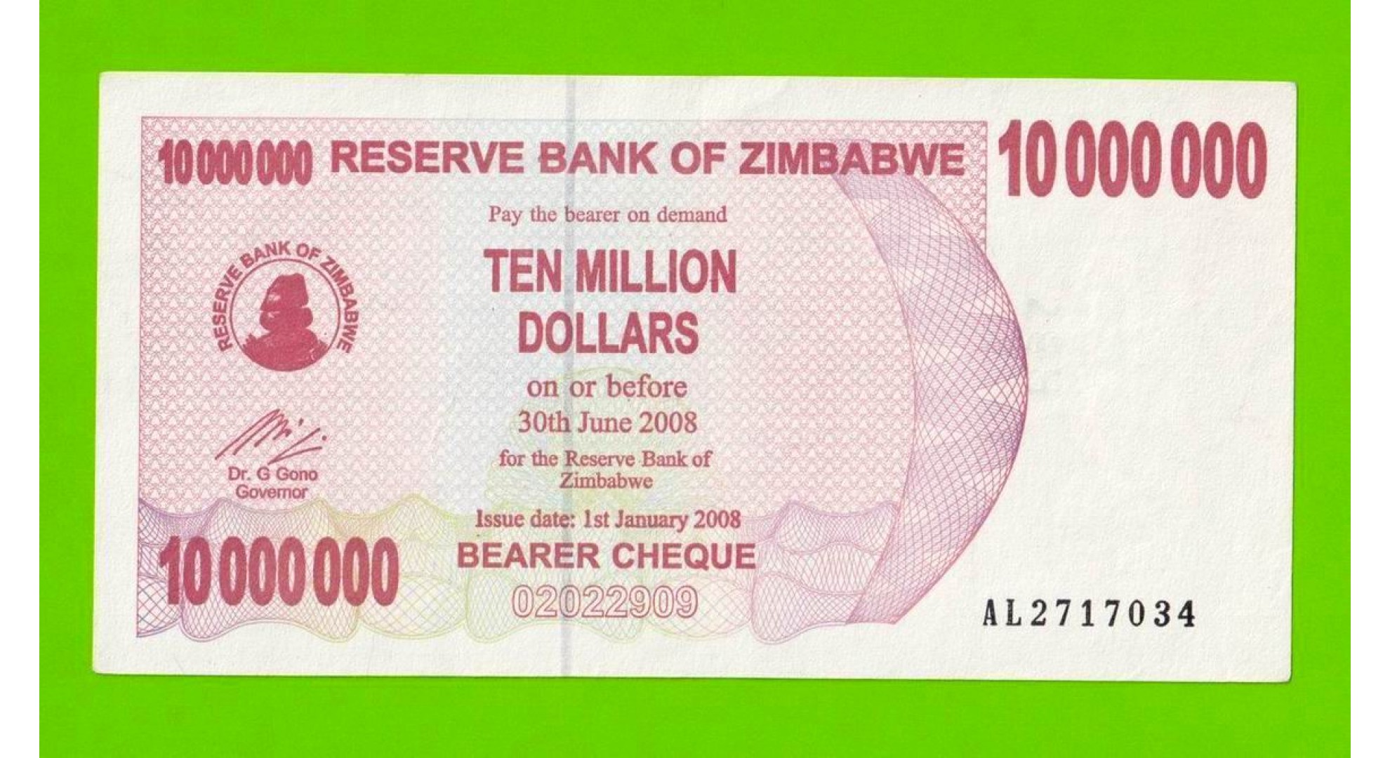 Зимбабве - 10000000 / 10 миллионов долларов - 2008 (AL)