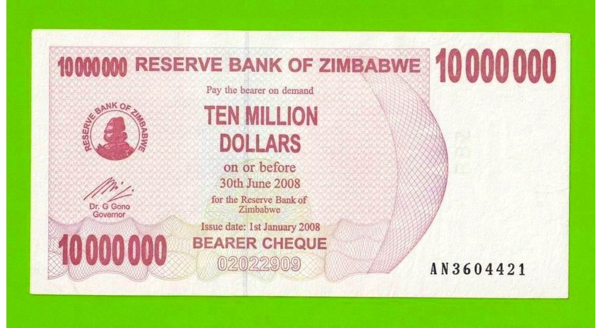 Зимбабве - 10000000 / 10 миллионов долларов - 2008 (AN)