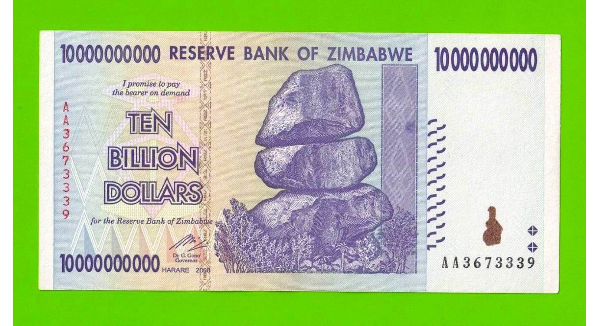 Зимбабве - 10000000000 / 10 миллиардов долларов - 2008 (AA)