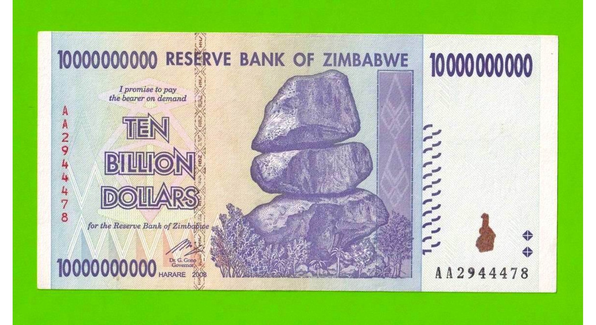 Зимбабве - 10000000000 / 10 миллиардов долларов - 2008 (AA)