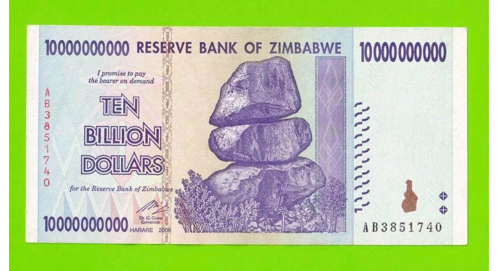 Зимбабве - 10000000000 / 10 миллиардов долларов - 2008 (AB)