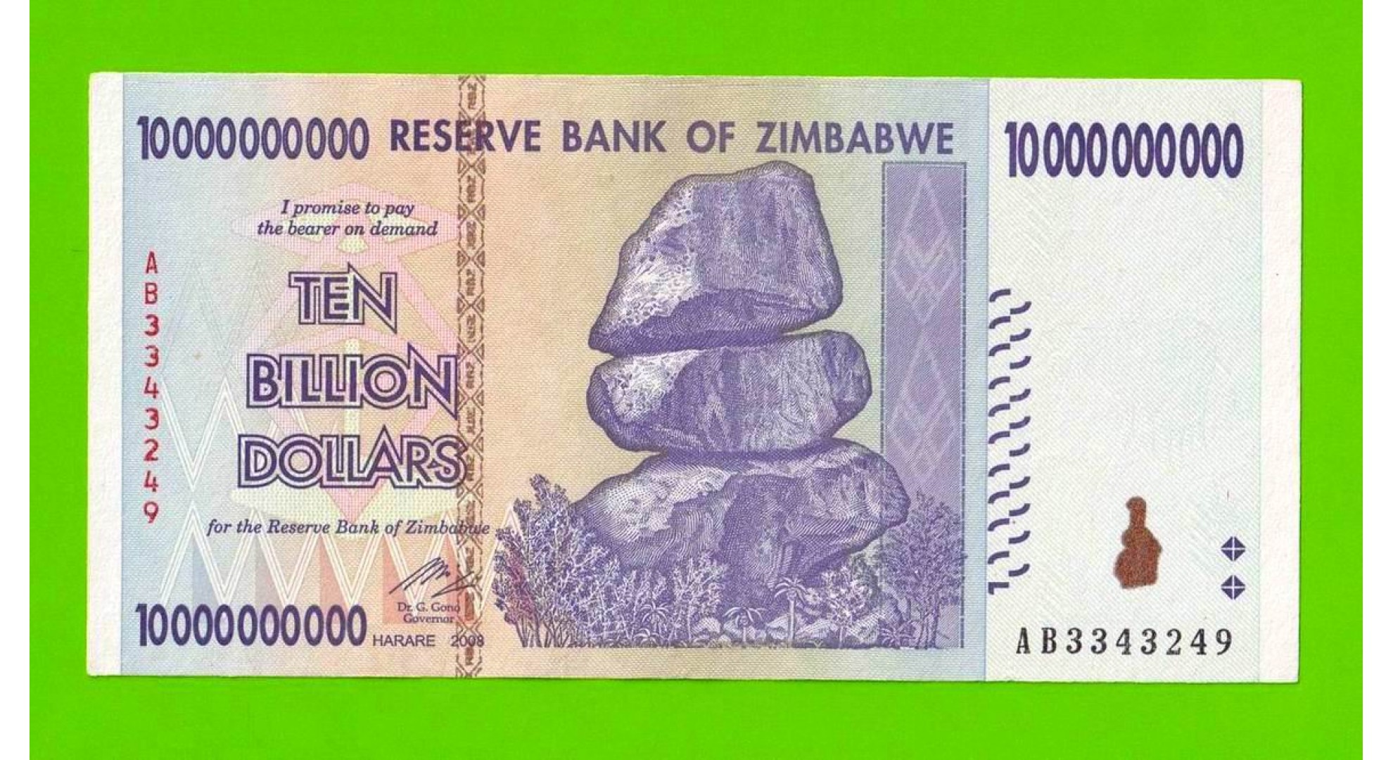 Зимбабве - 10000000000 / 10 миллиардов долларов - 2008 (AB)