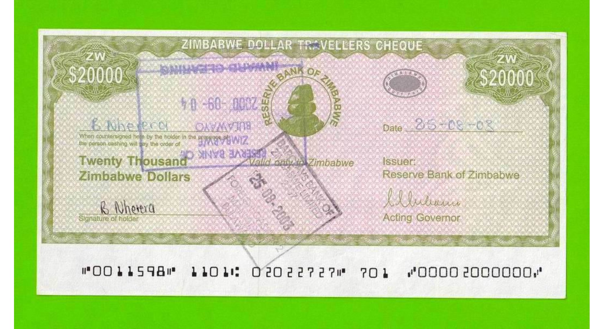 Зимбабве - 20000 долларов - Дорожный чек - 2003 - XF!!!