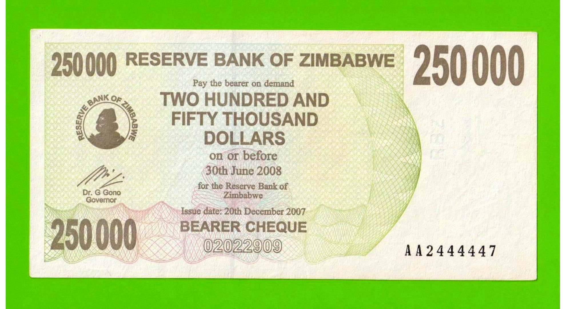 Зимбабве - 250000 долларов - 2007 (AA)