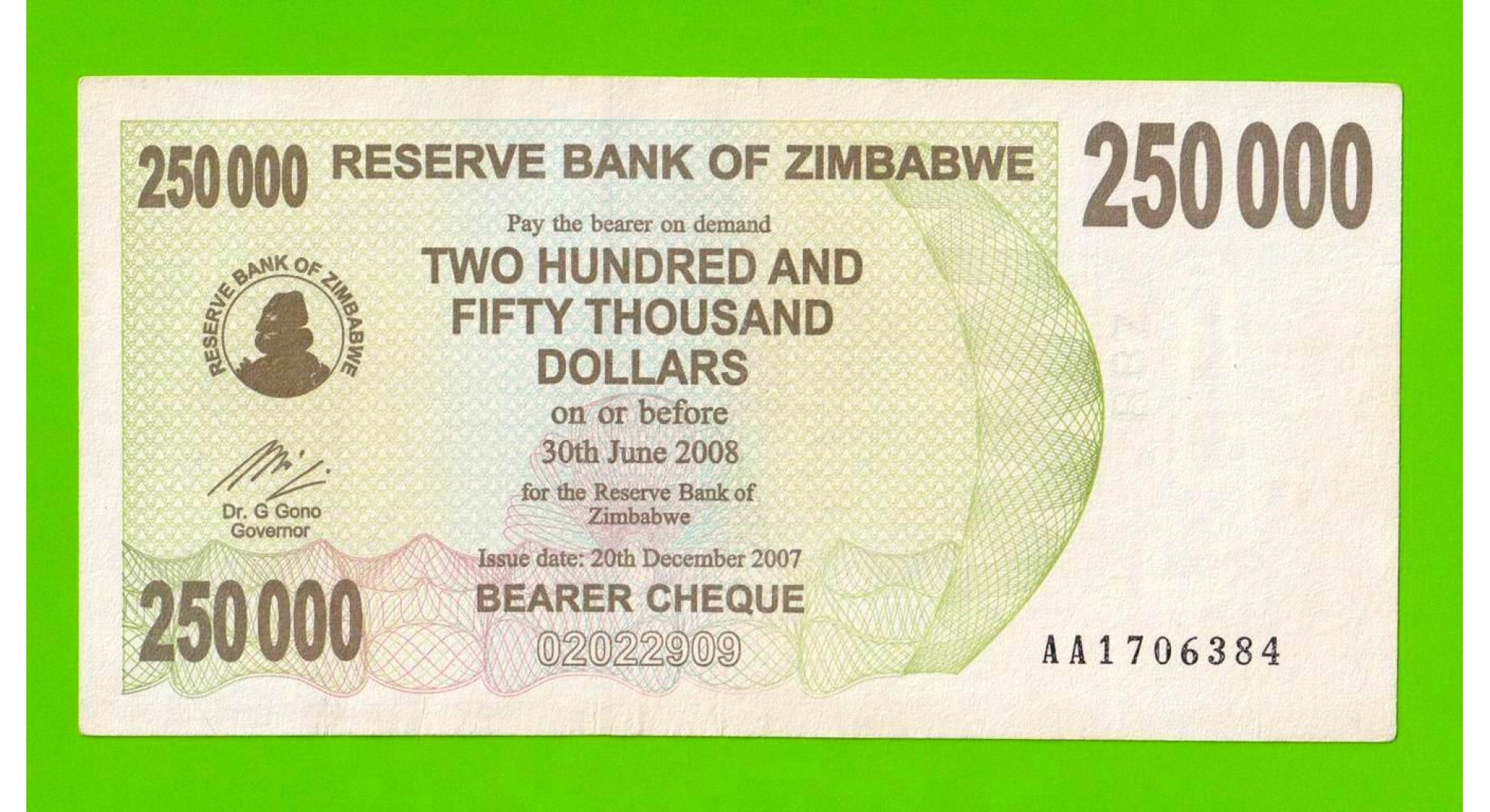 Зимбабве - 250000 долларов - 2007 (AA)