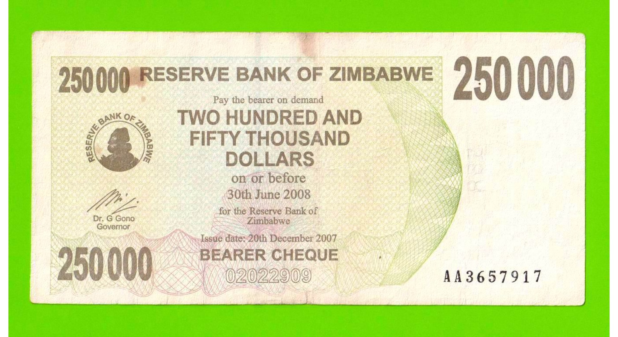 Зимбабве - 250000 долларов - 2007 (AA)