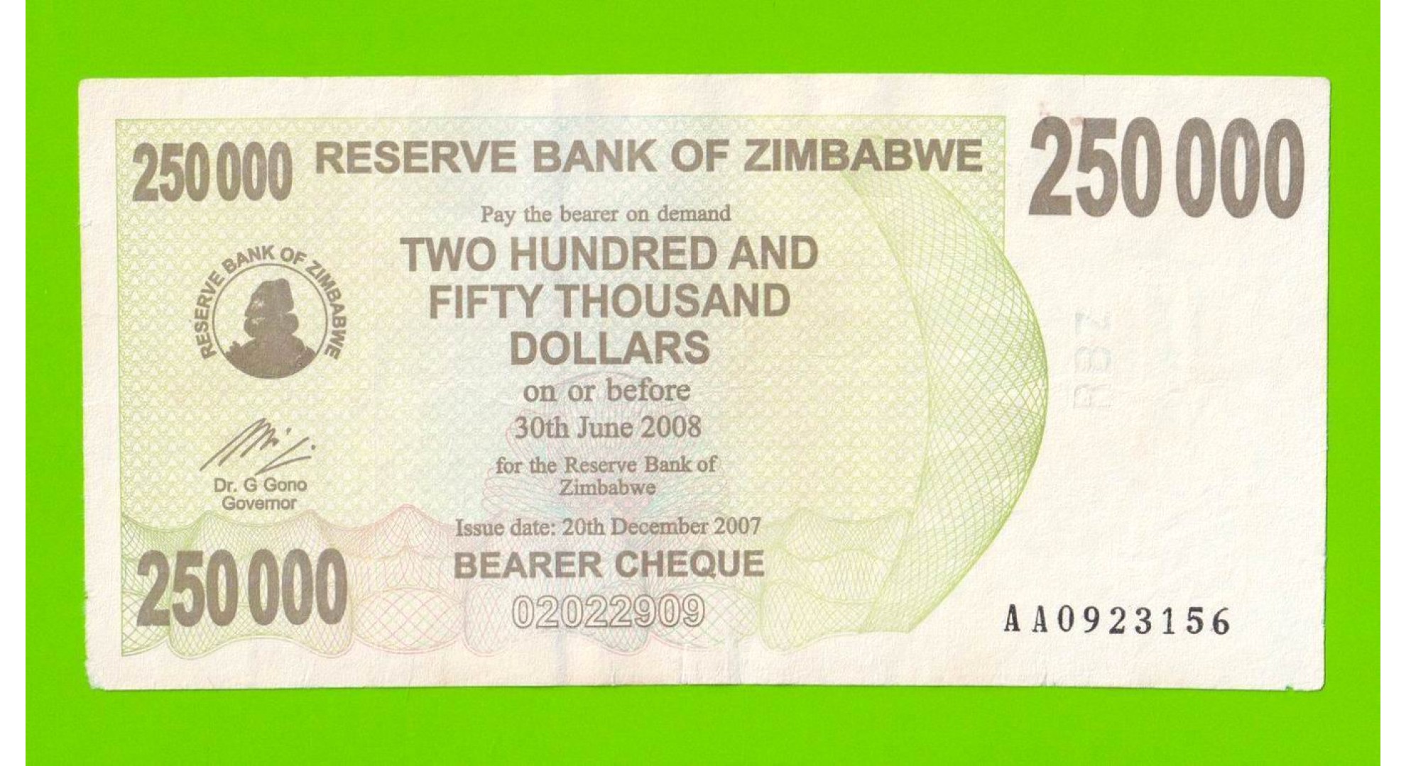 Зимбабве - 250000 долларов - 2007 (AA)