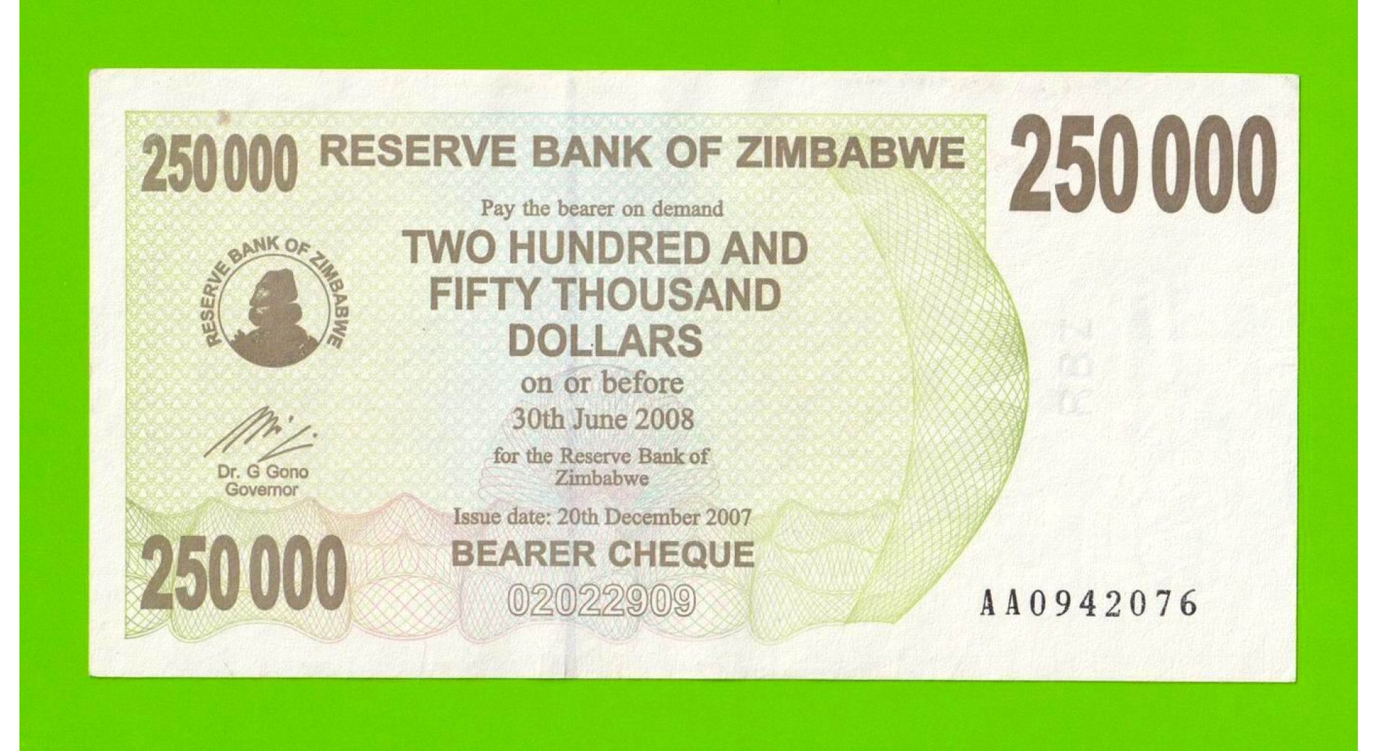 Зимбабве - 250000 долларов - 2007 (AA)
