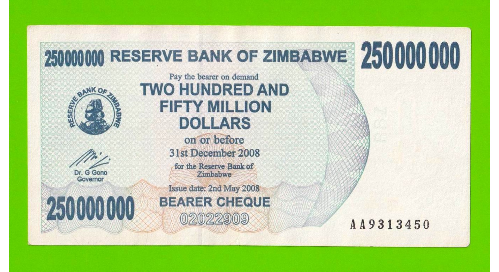 Зимбабве - 250000000 / 250 миллионов долларов - 2008 (AA)