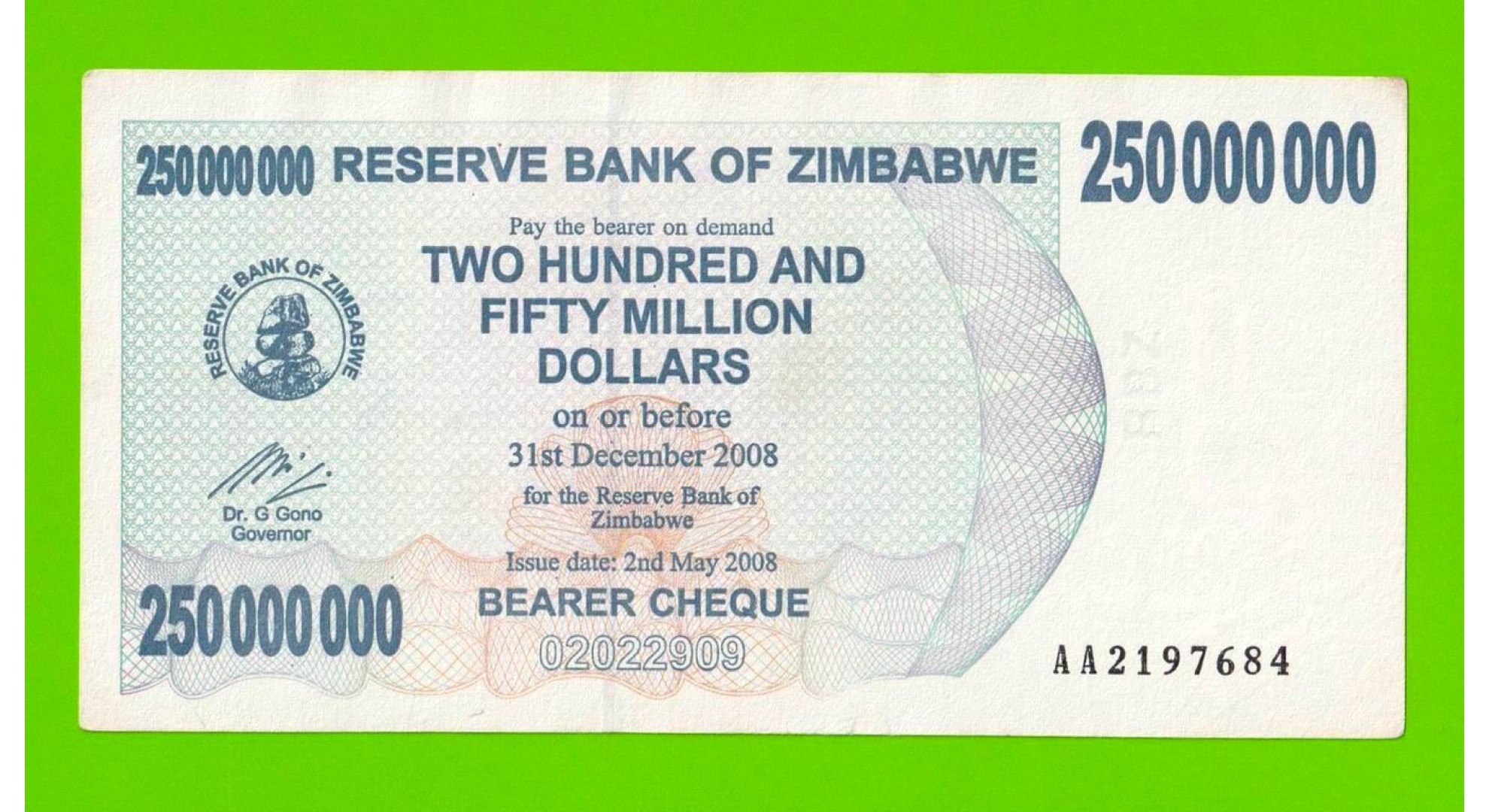 Зимбабве - 250000000 / 250 миллионов долларов - 2008 (AA)