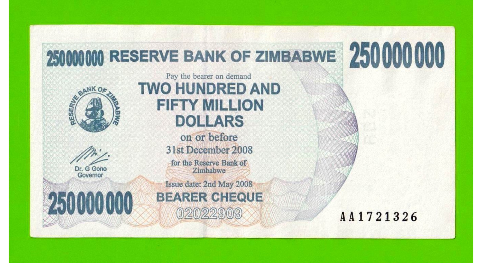 Зимбабве - 250000000 / 250 миллионов долларов - 2008 (AA)