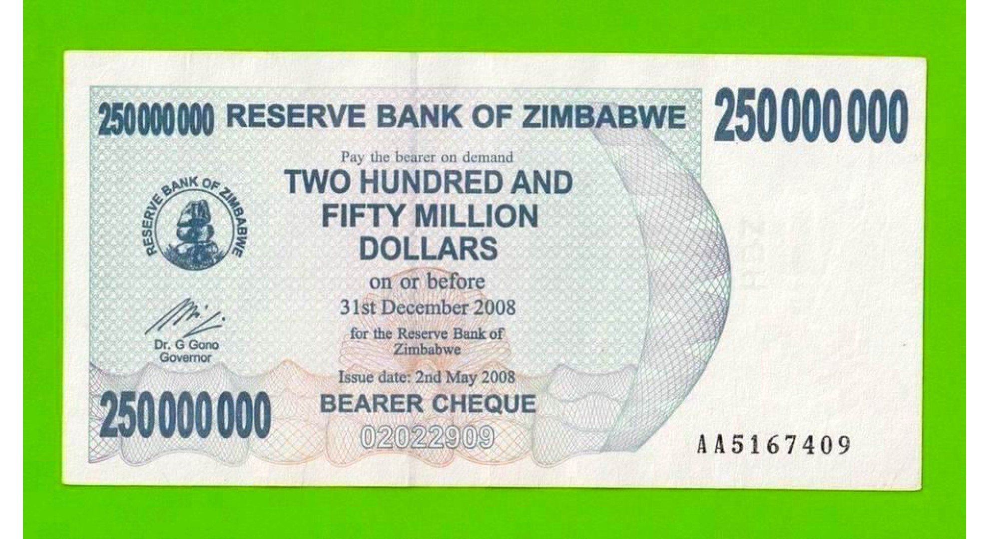 Зимбабве - 250000000 / 250 миллионов долларов - 2008 (AA)