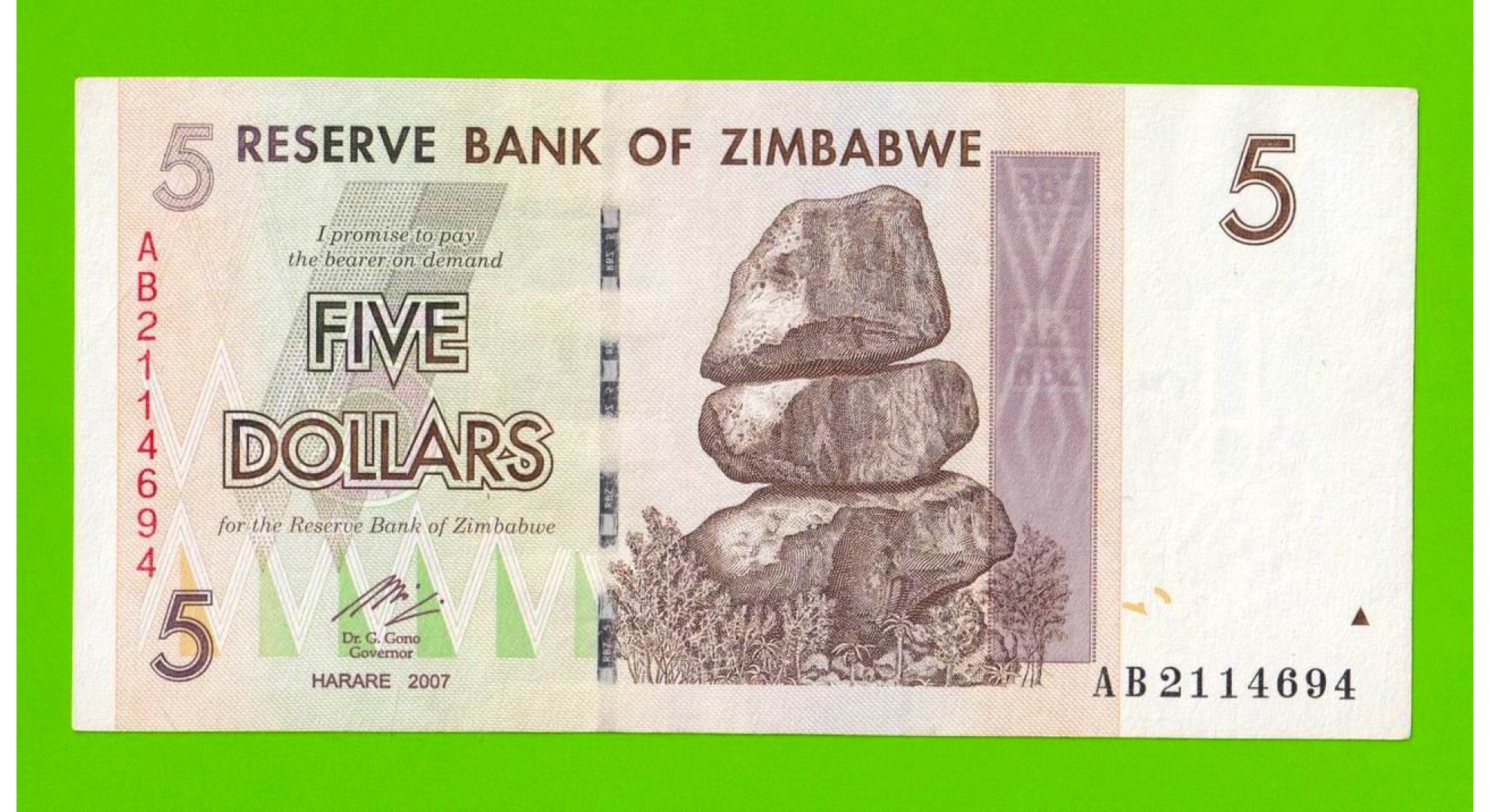Зимбабве - 5 долларов - 2007 (AB)