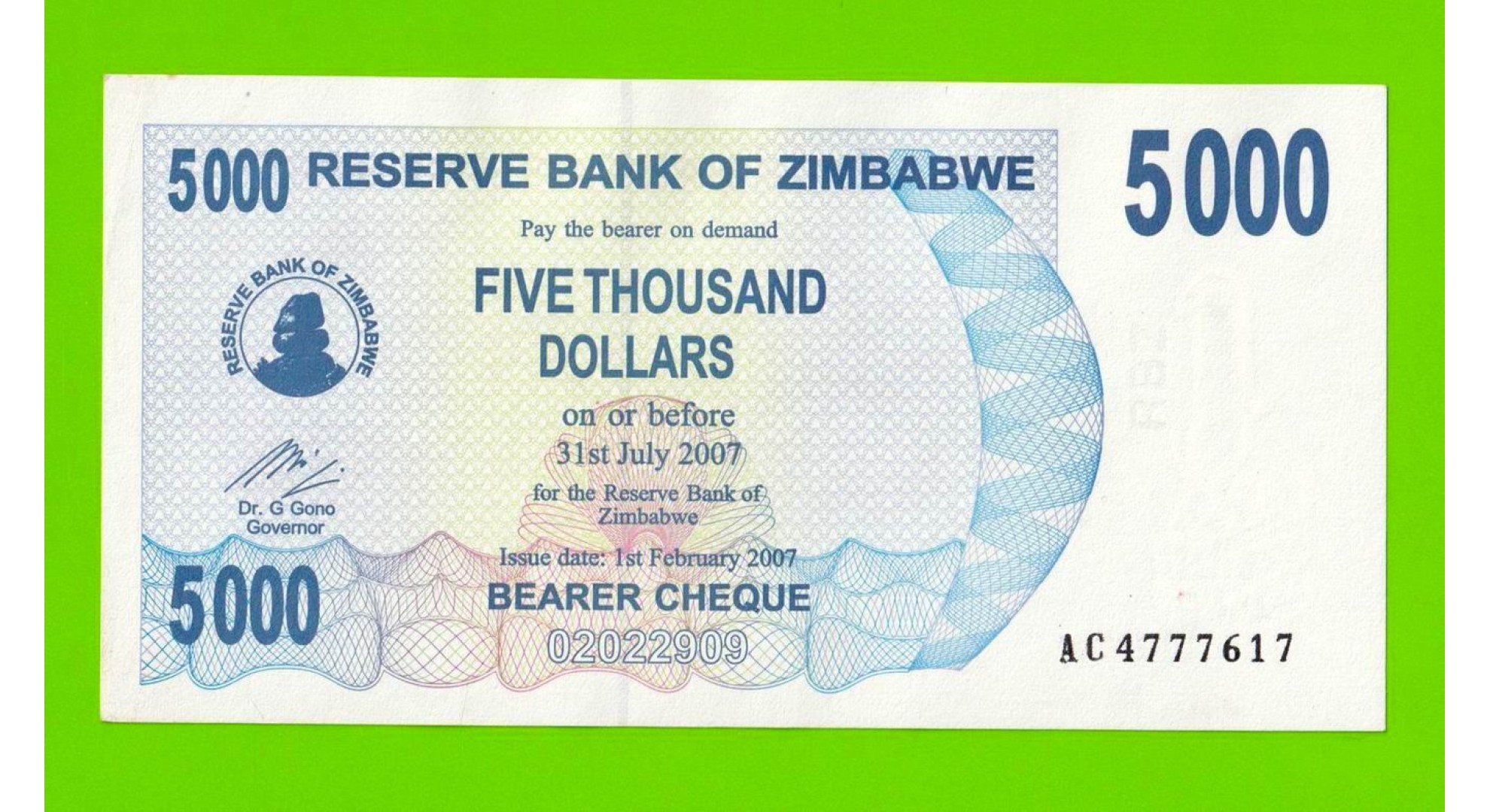 Зимбабве - 5000 долларов - 2007 (AC)