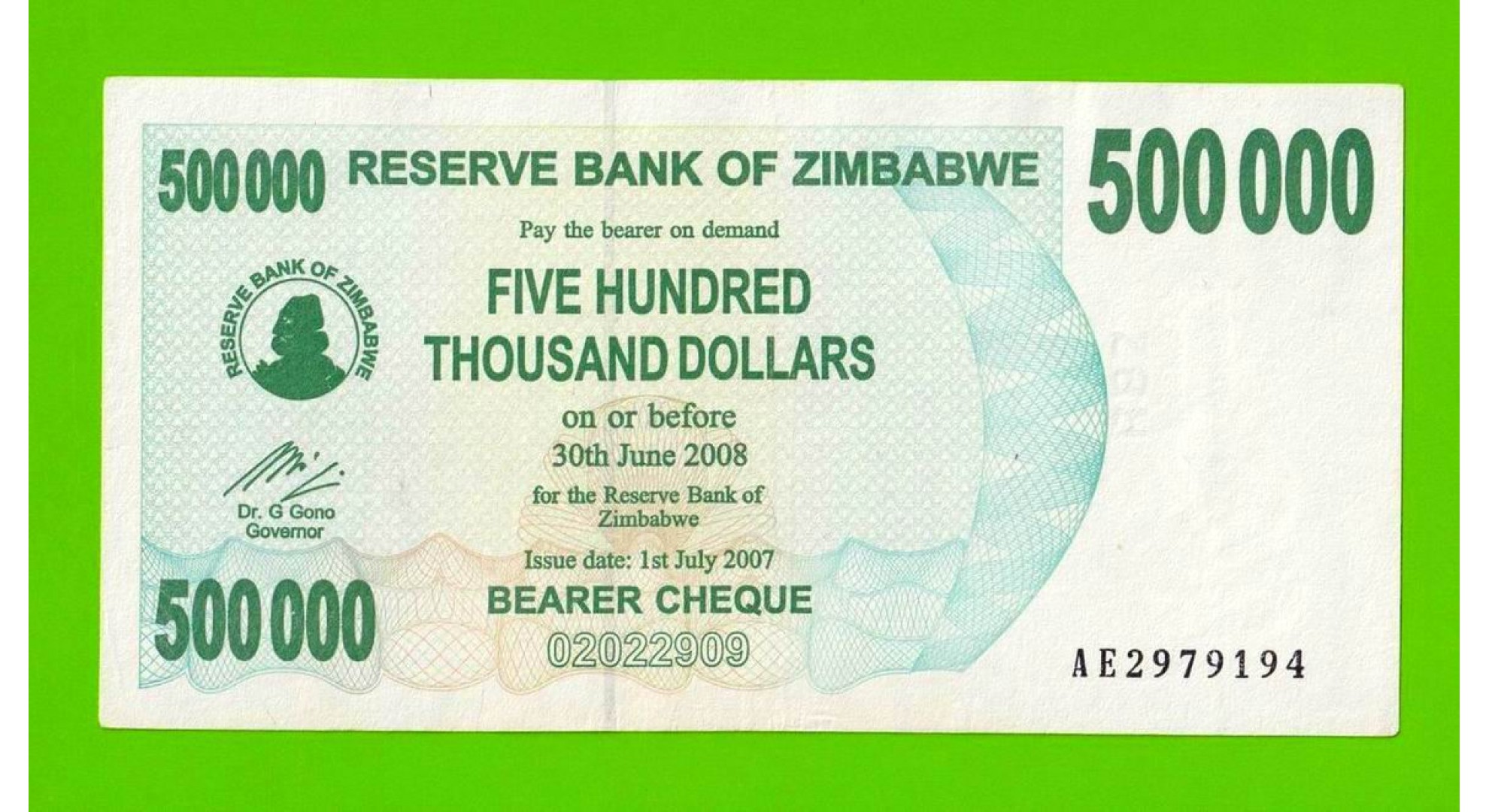 Зимбабве - 500000 долларов - 2007 (AE)