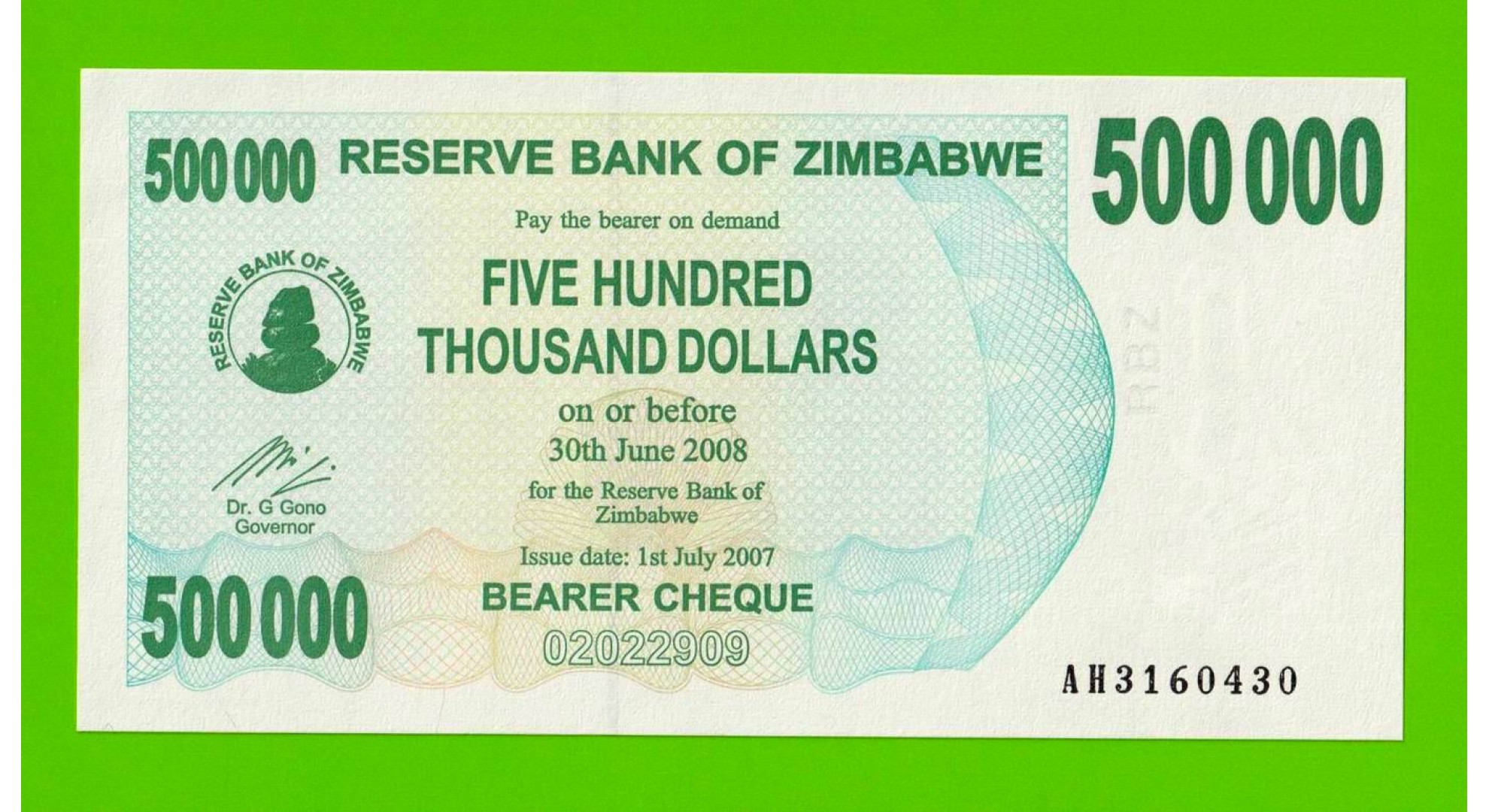 Зимбабве - 500000 долларов - 2007 - UNC!!!