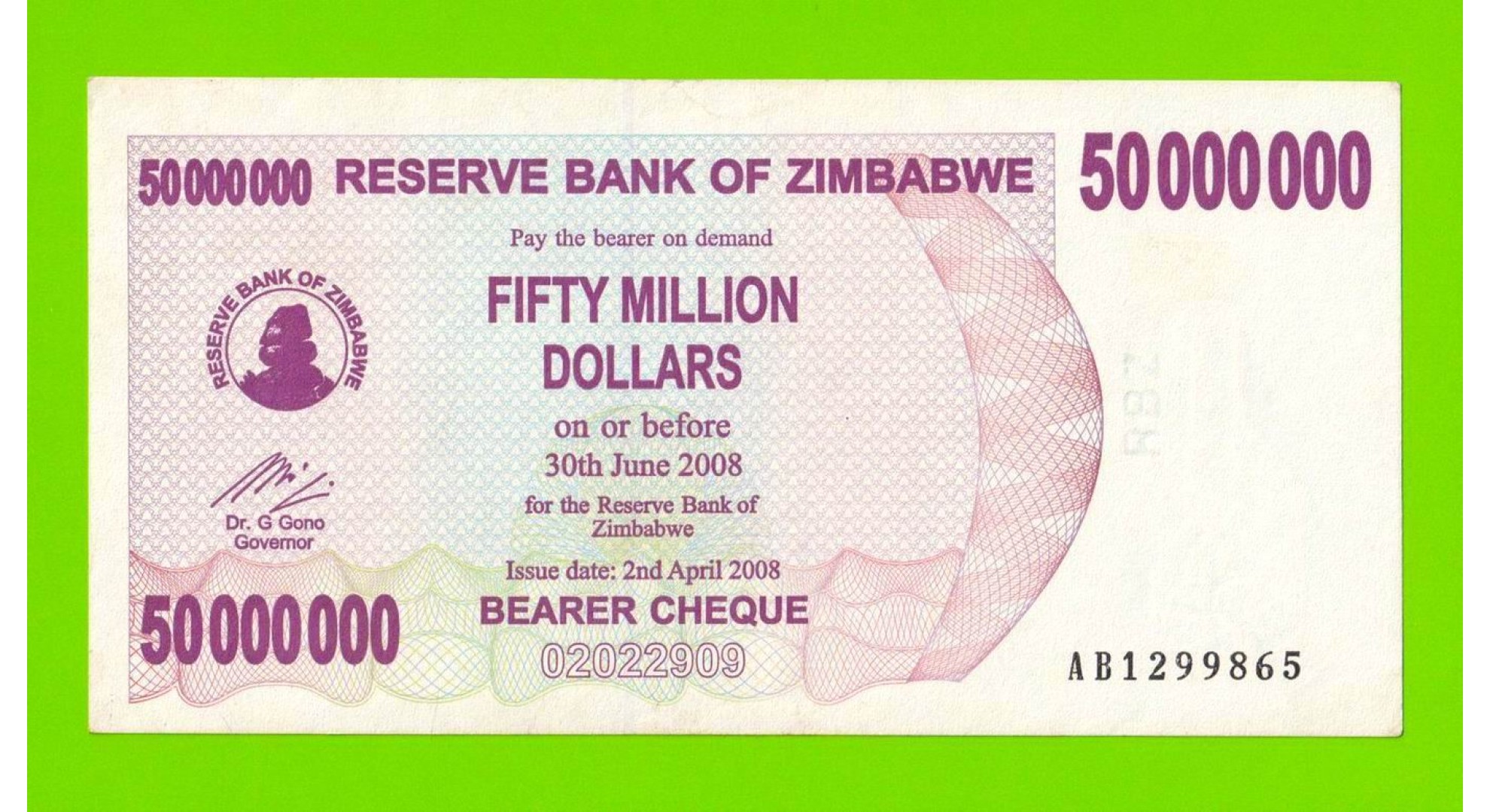 Зимбабве - 50000000 / 50 миллионов долларов - 2008 (AB)