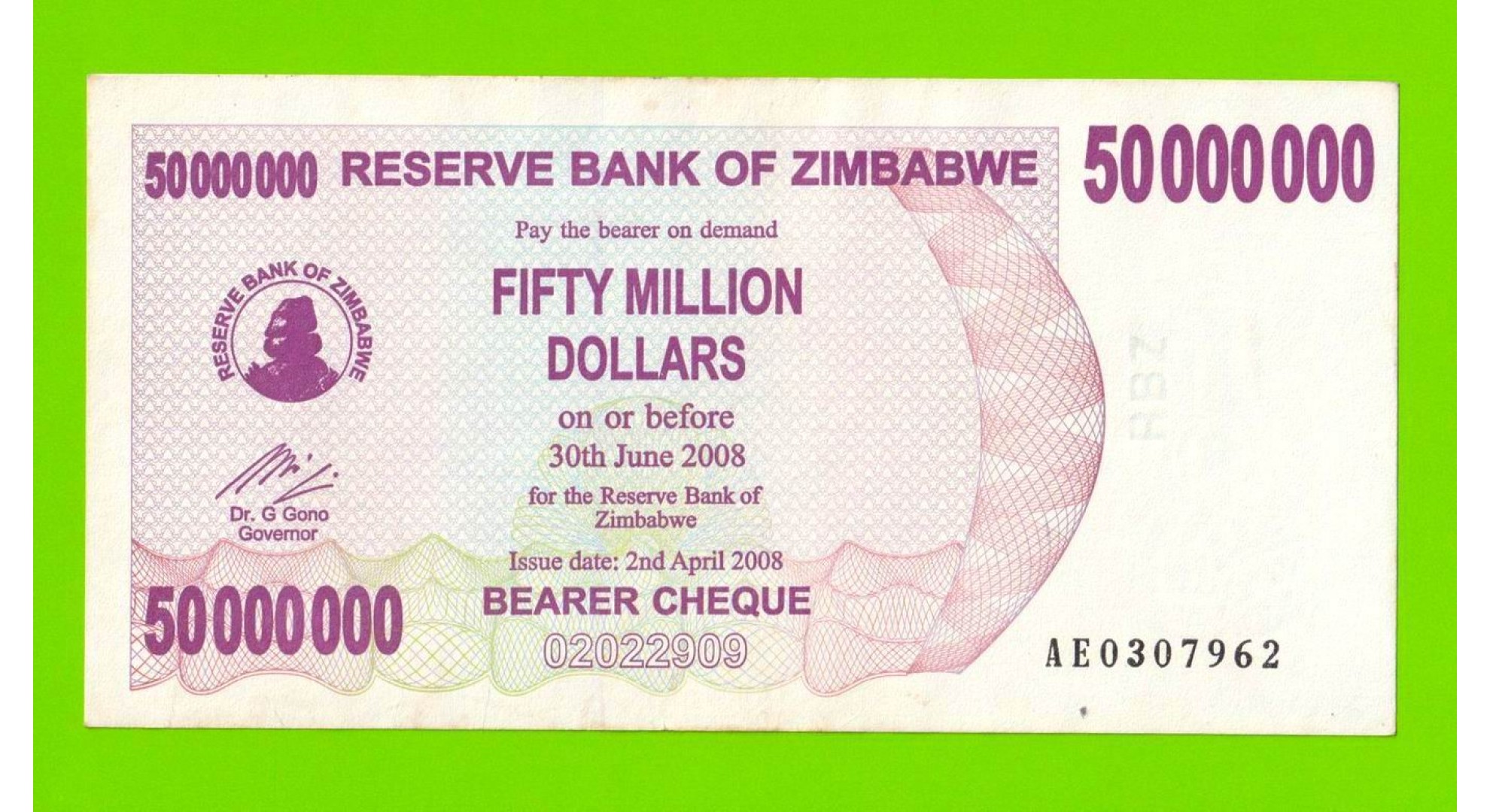 Зимбабве - 50000000 / 50 миллионов долларов - 2008 (AE)