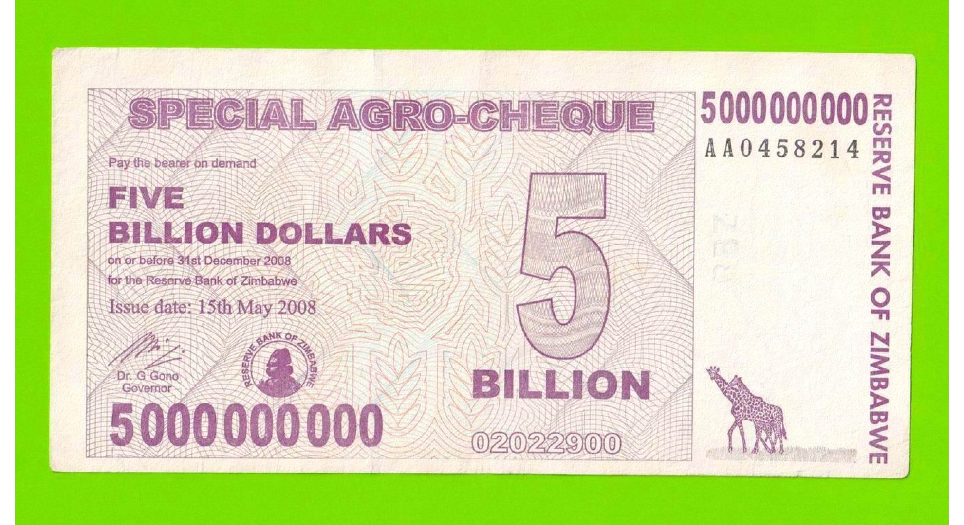 Зимбабве - 5000000000 / 5 миллиардов долларов - 2008 (AA)