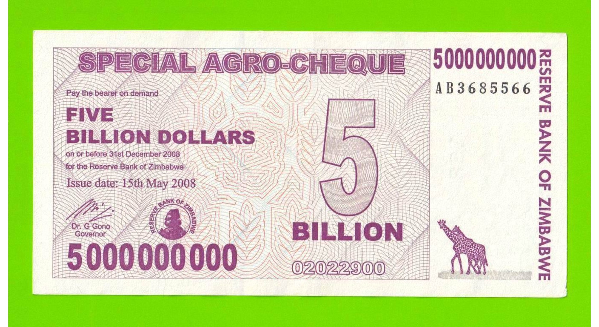 Зимбабве - 5000000000 / 5 миллиардов долларов - 2008 (AB)