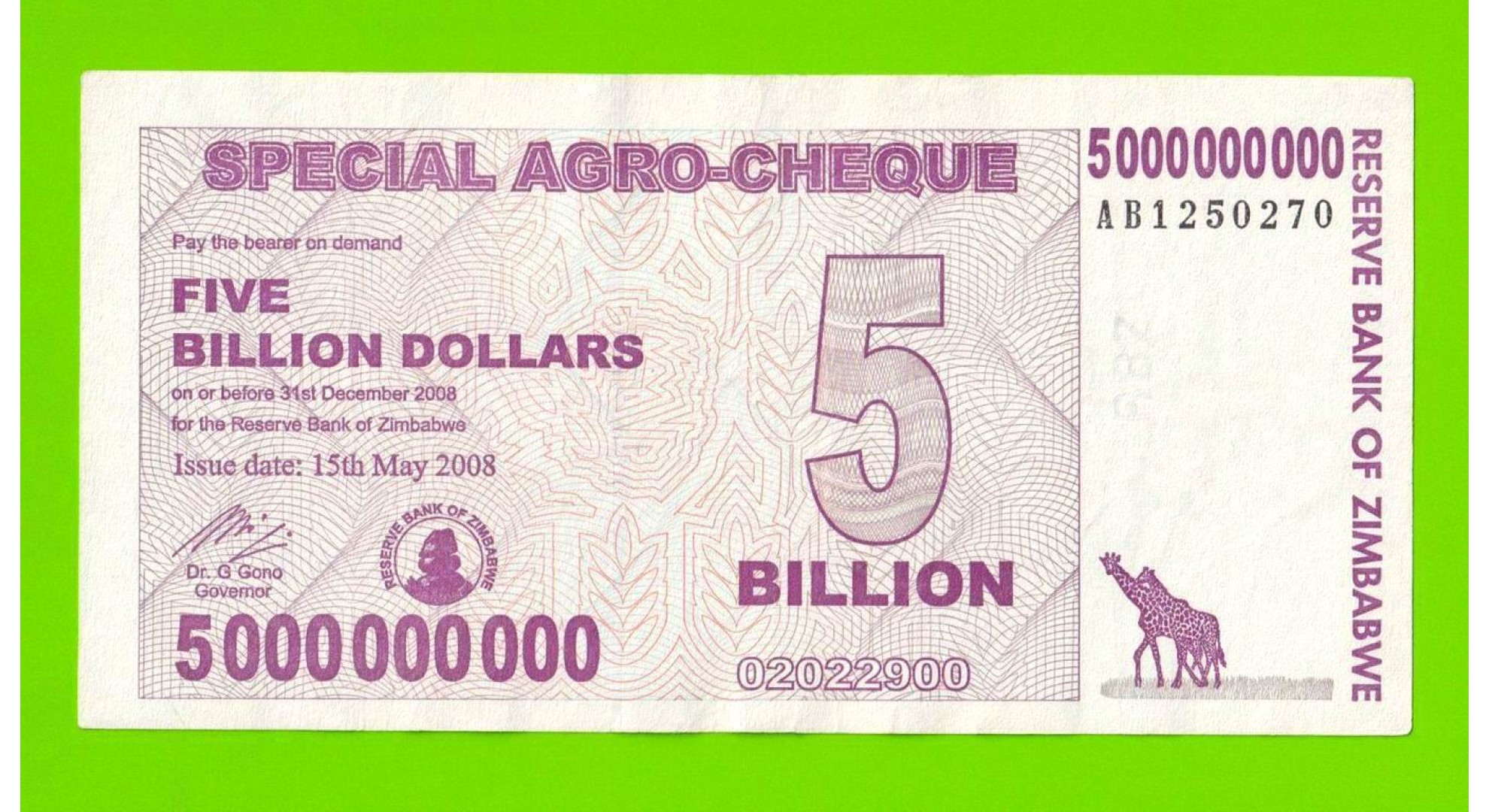 Зимбабве - 5000000000 / 5 миллиардов долларов - 2008 (AB)