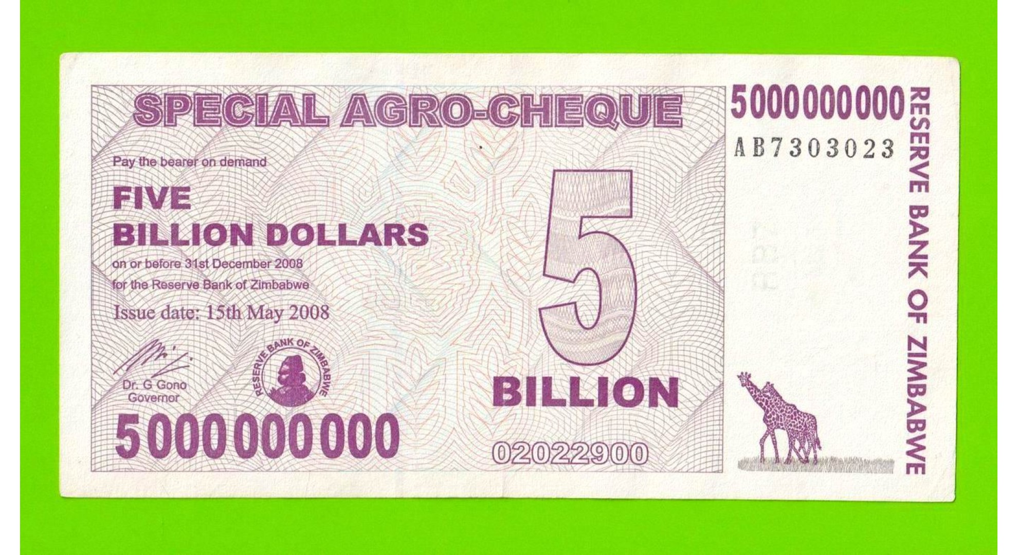Зимбабве - 5000000000 / 5 миллиардов долларов - 2008 (AB)