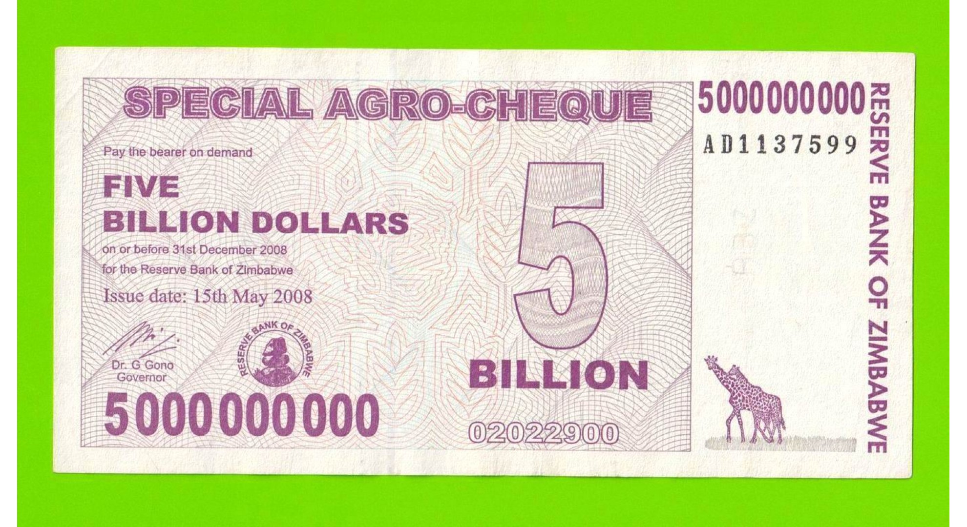 Зимбабве - 5000000000 / 5 миллиардов долларов - 2008 (AD)
