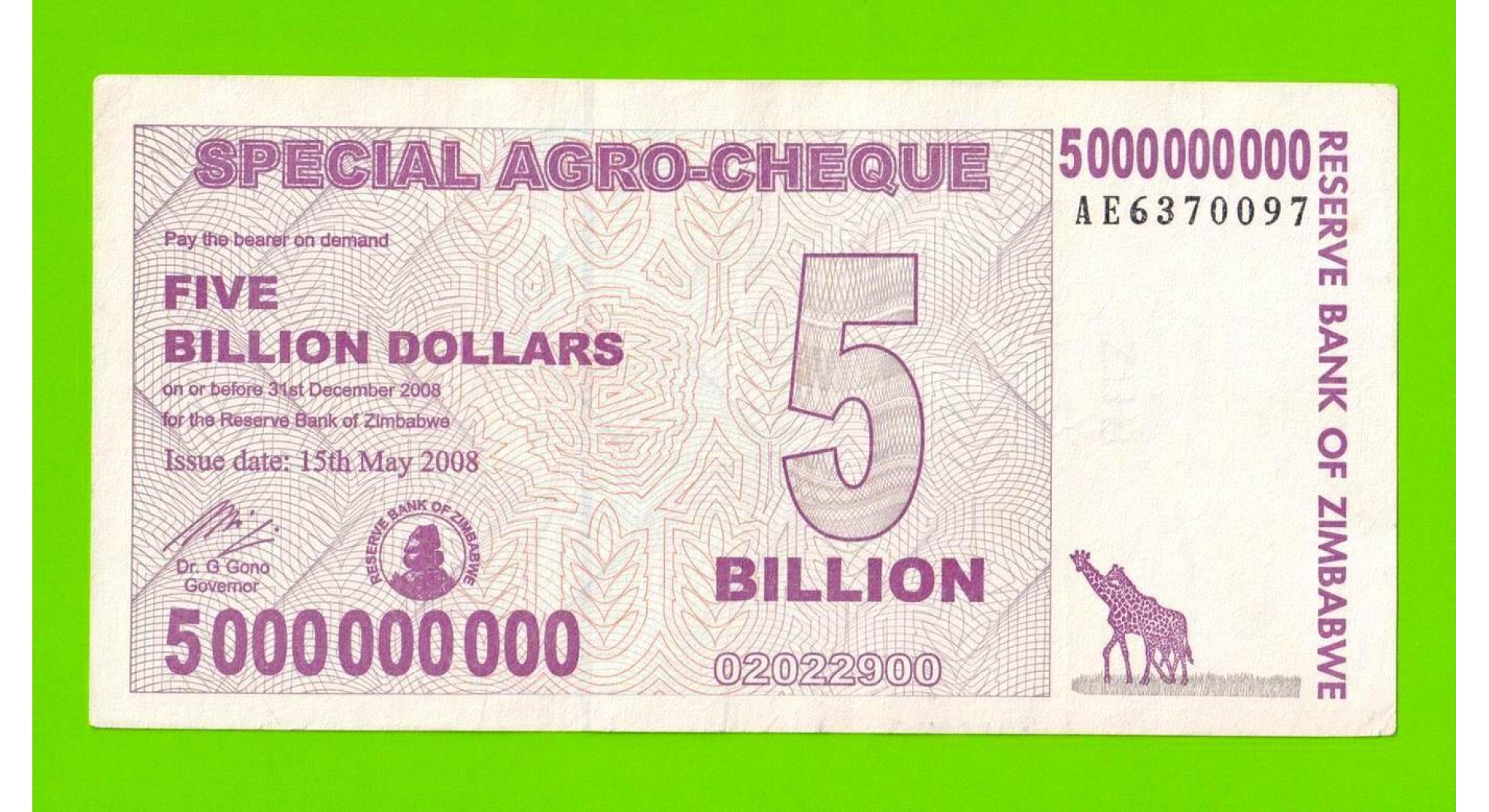 Зимбабве - 5000000000 / 5 миллиардов долларов - 2008 (AE)