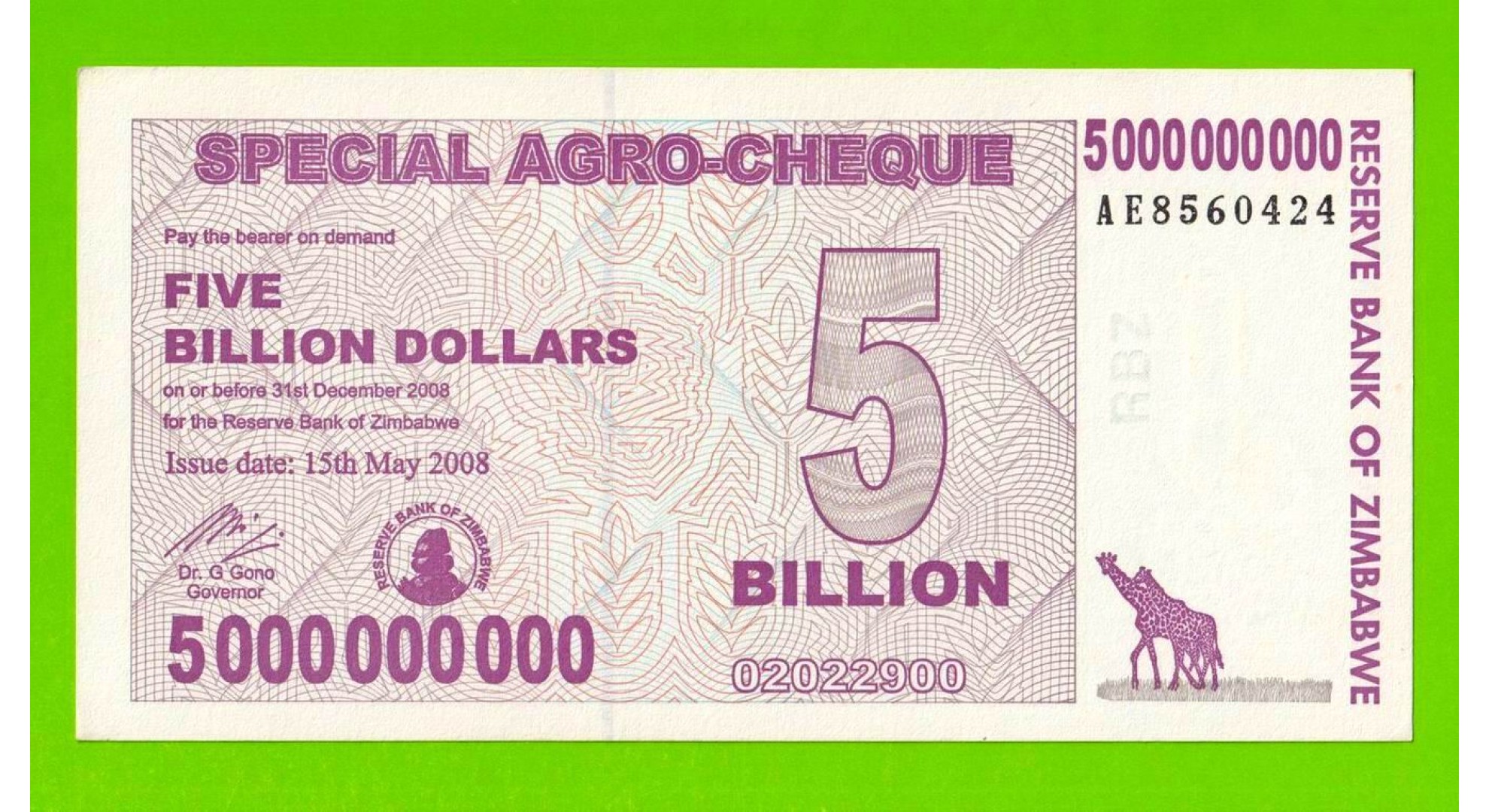 Зимбабве - 5000000000 / 5 миллиардов долларов - 2008 (AE) - aUNC!!!