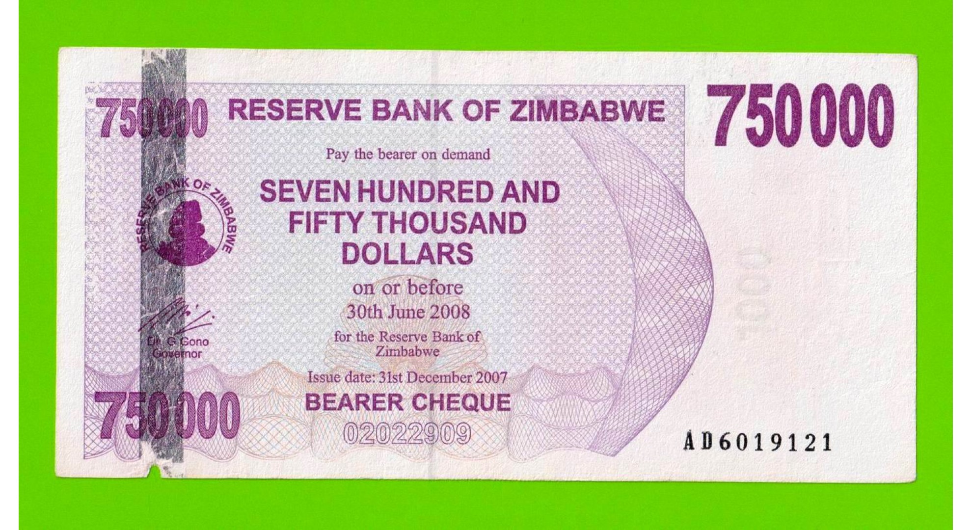 Зимбабве - 750000 долларов - 2007 (AD)