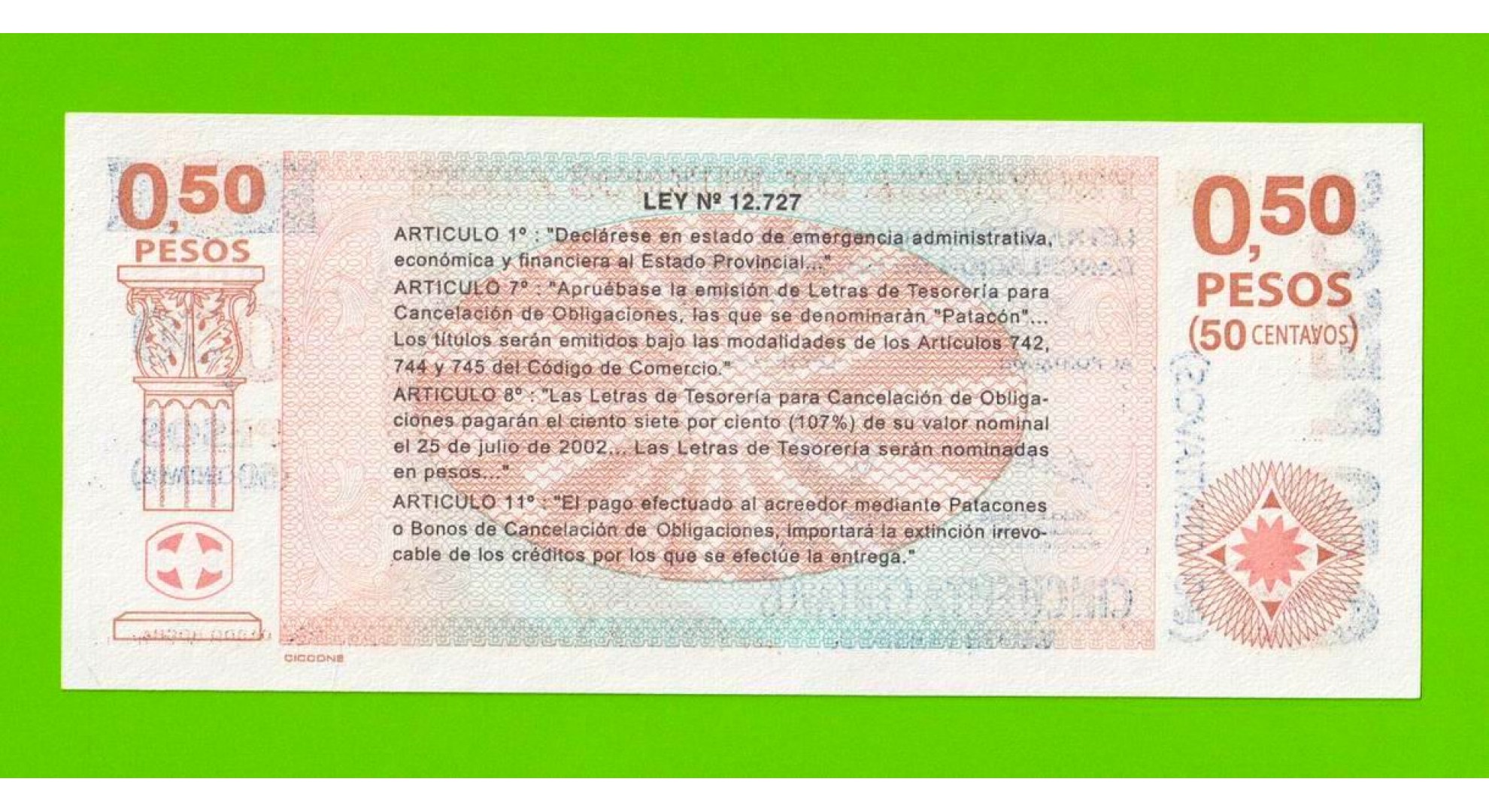 Аргентина, Патакон (Буэнос-Айрес) - 0,50 песо / 50 сентаво - 2002 (A) - UNC!!!