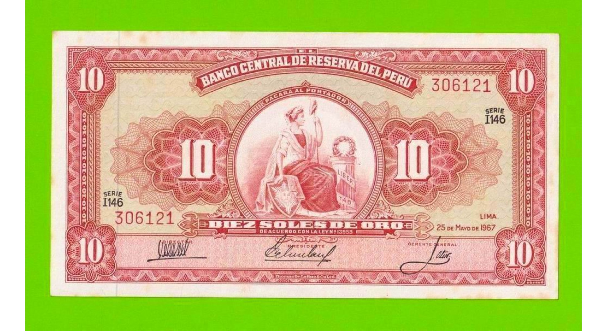 Перу - 10 соль де оро - 1967 - пятна - aUNC!!!