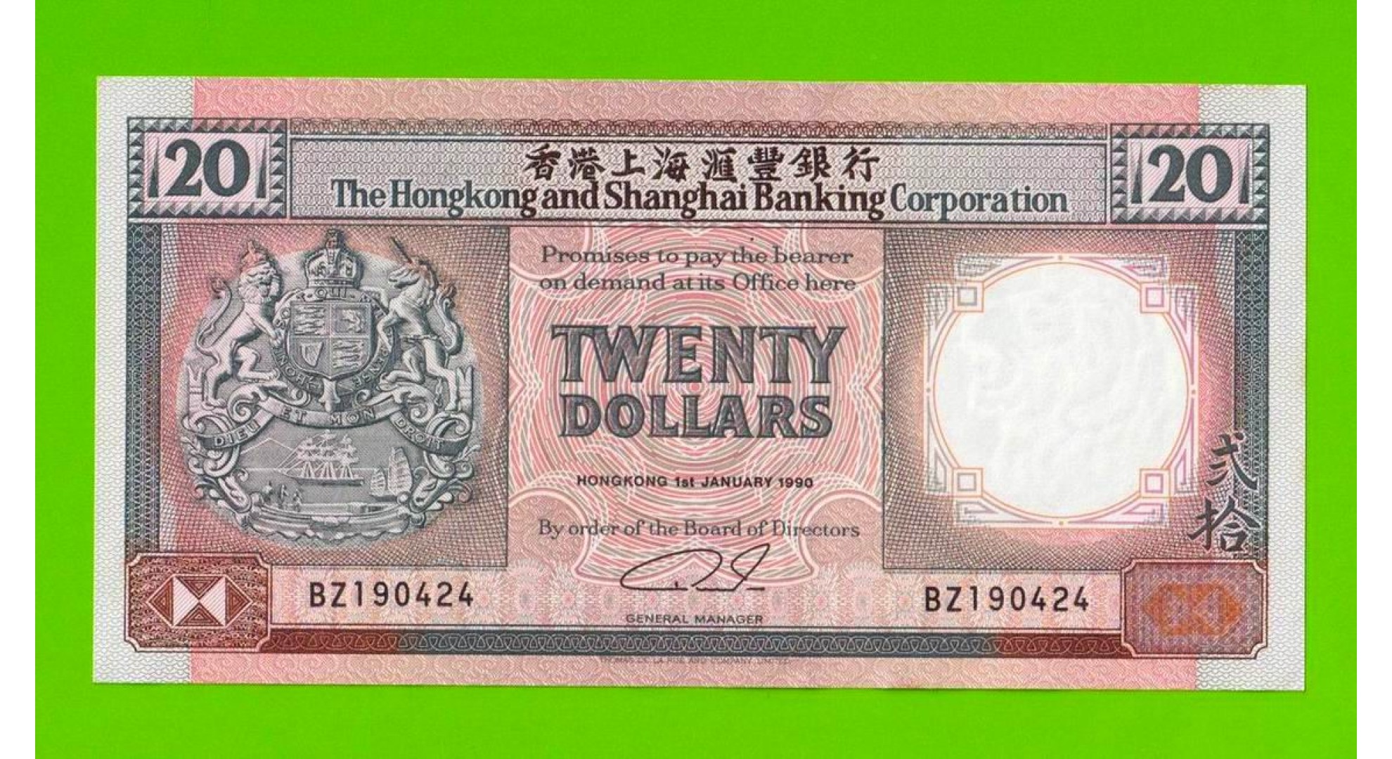 Гонконг - 20 долларов - 1990 - пятна - aUNC!!!