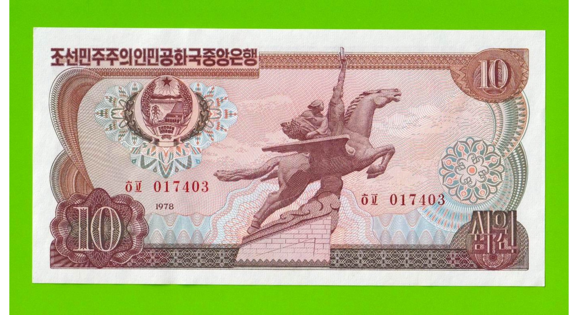 Северная Корея (КНДР) - 10 вон - 1978 - Красная печать - aUNC!!!