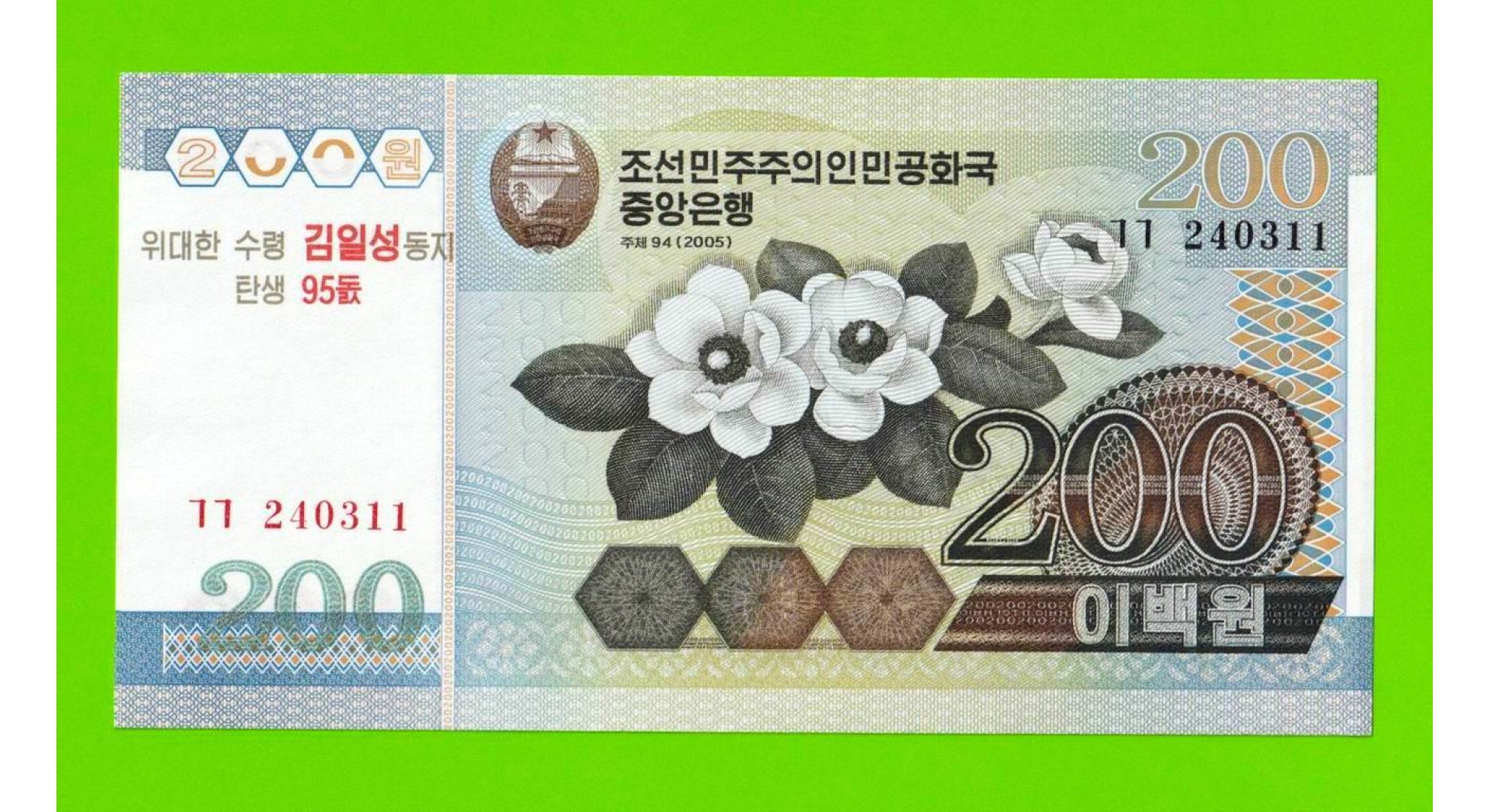 Северная Корея (КНДР) - 200 вон - 2007 (95 лет со дня рождения Ким Ир Сена) - UNC!!!