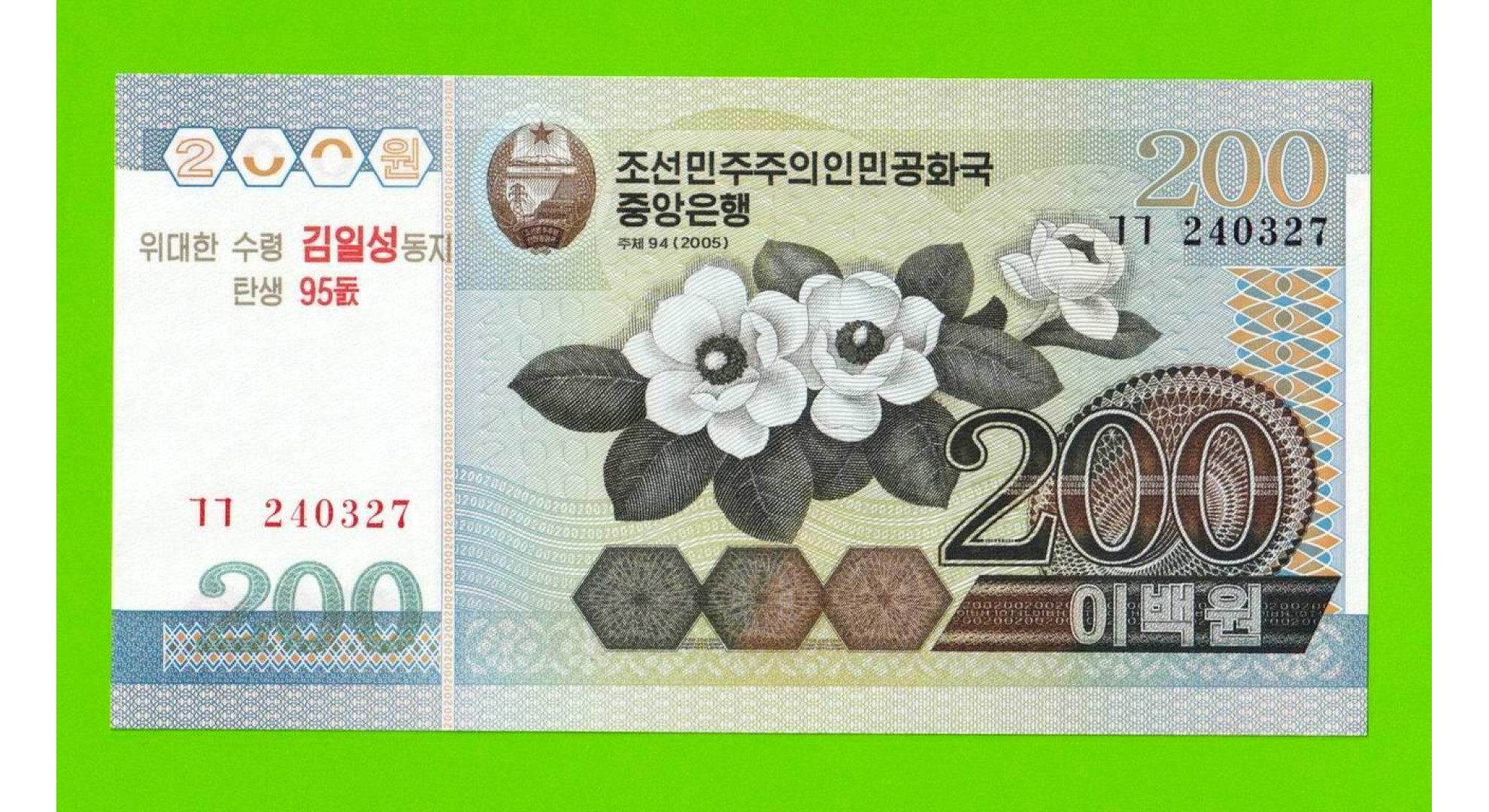 Северная Корея (КНДР) - 200 вон - 2007 (95 лет со дня рождения Ким Ир Сена) - UNC!!!