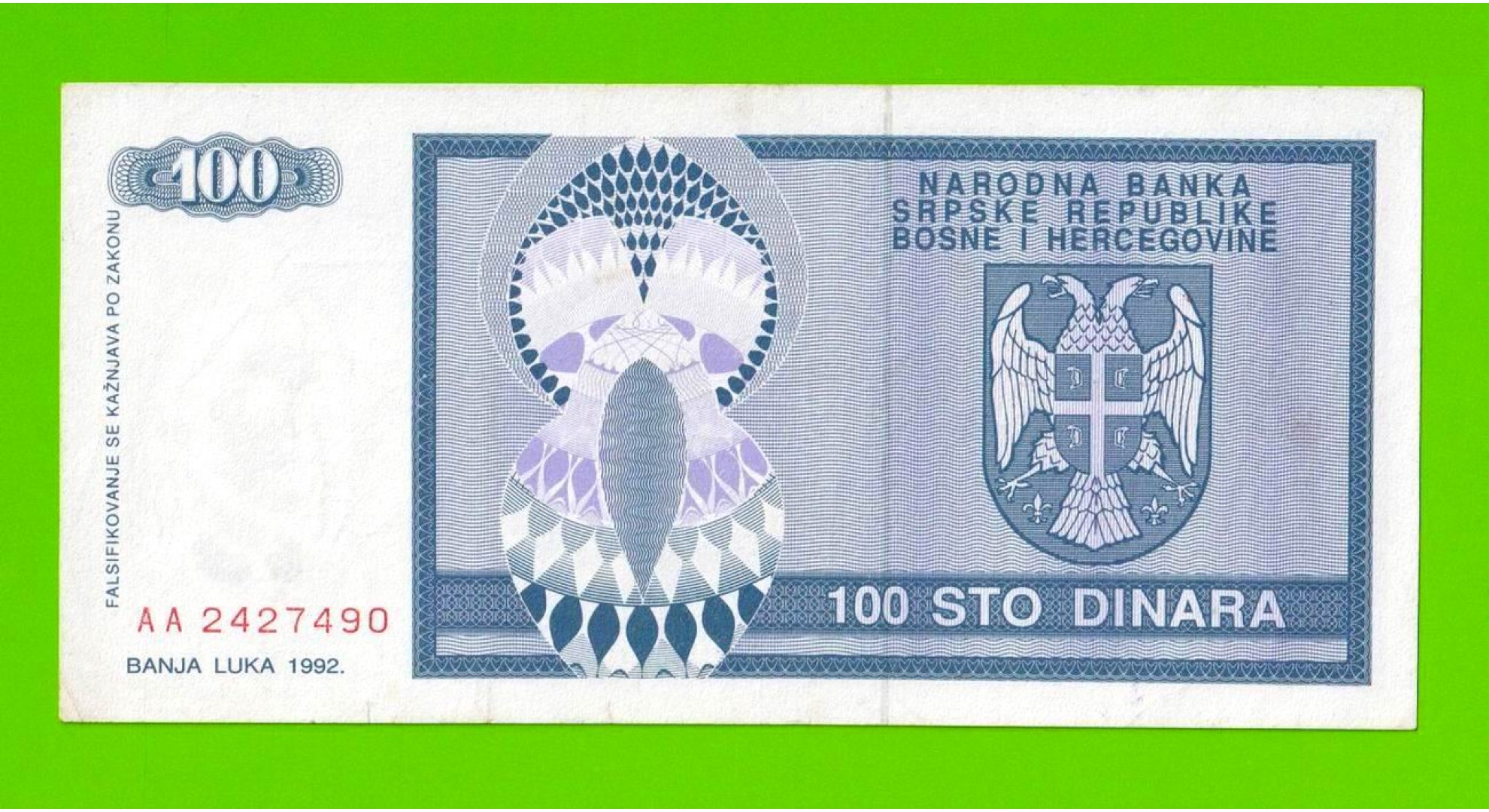 Босния и Герцеговина (Республика Сербская) - 100 динаров - 1992 (AA)