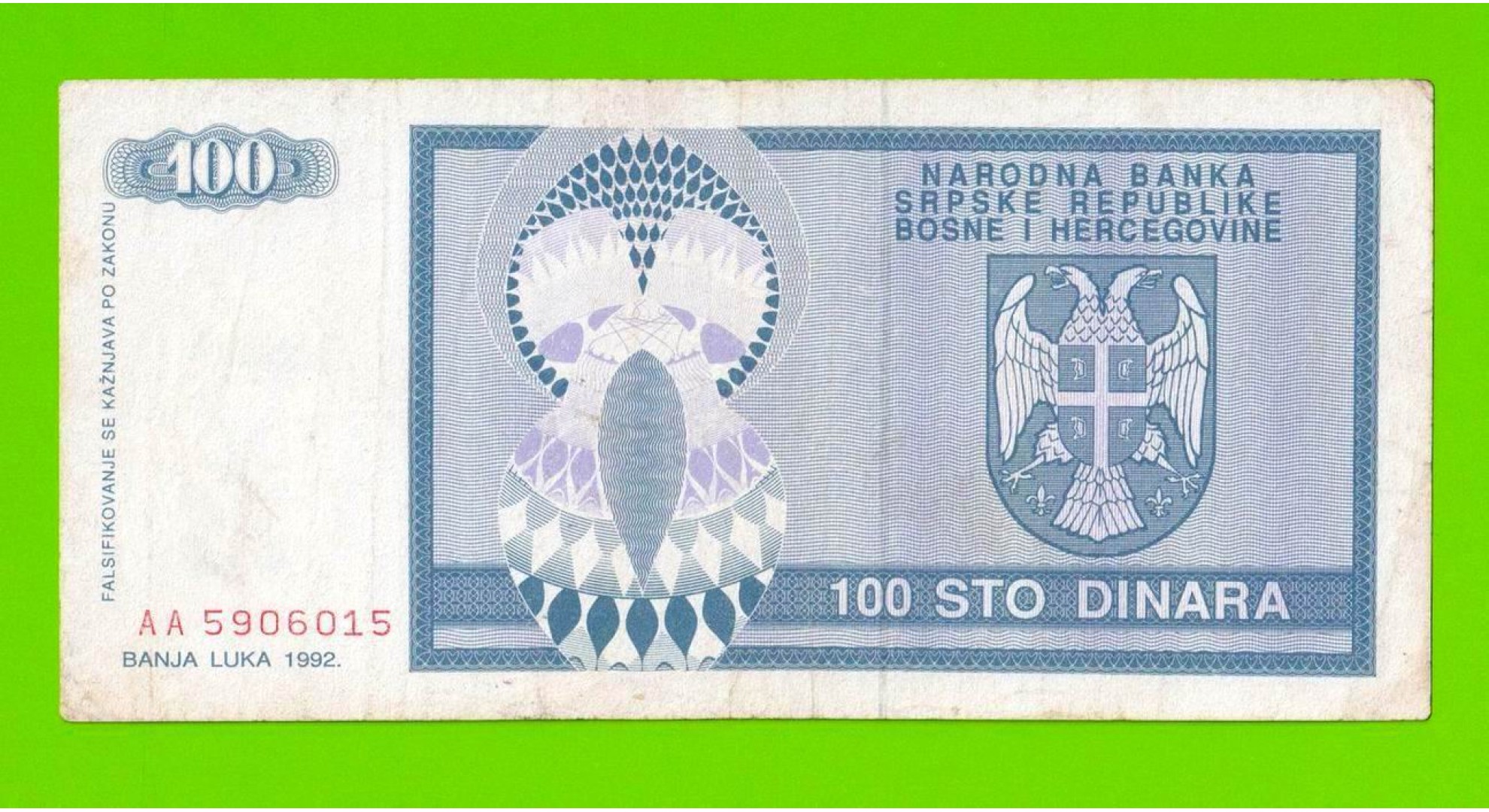 Босния и Герцеговина (Республика Сербская) - 100 динаров - 1992 (AA)