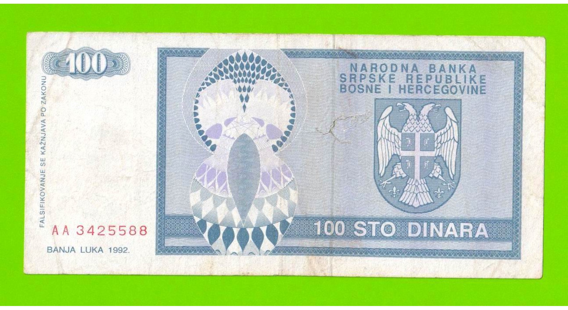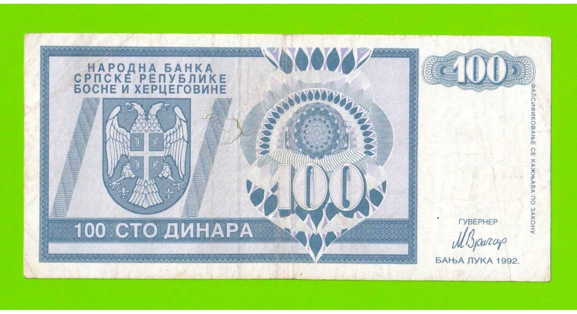 Босния и Герцеговина (Республика Сербская) - 100 динаров - 1992 (AA)