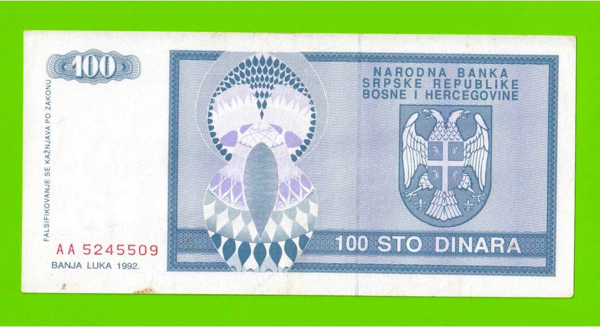 Босния и Герцеговина (Республика Сербская) - 100 динаров - 1992 (AA)