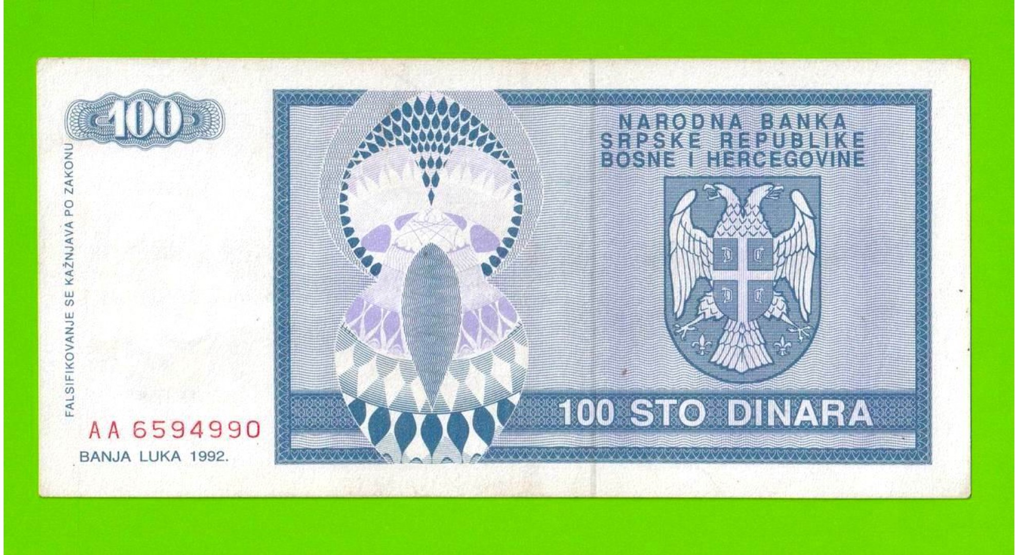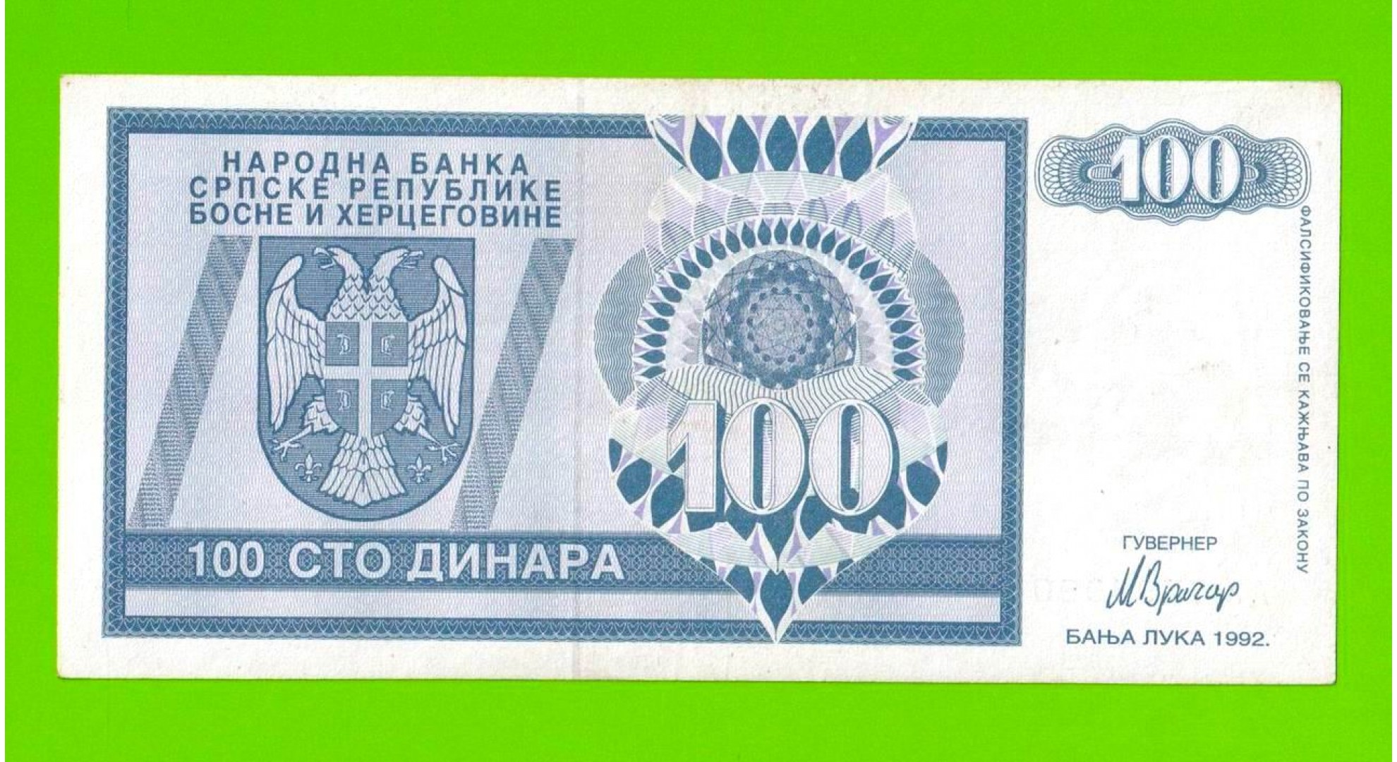 Босния и Герцеговина (Республика Сербская) - 100 динаров - 1992 (AA)