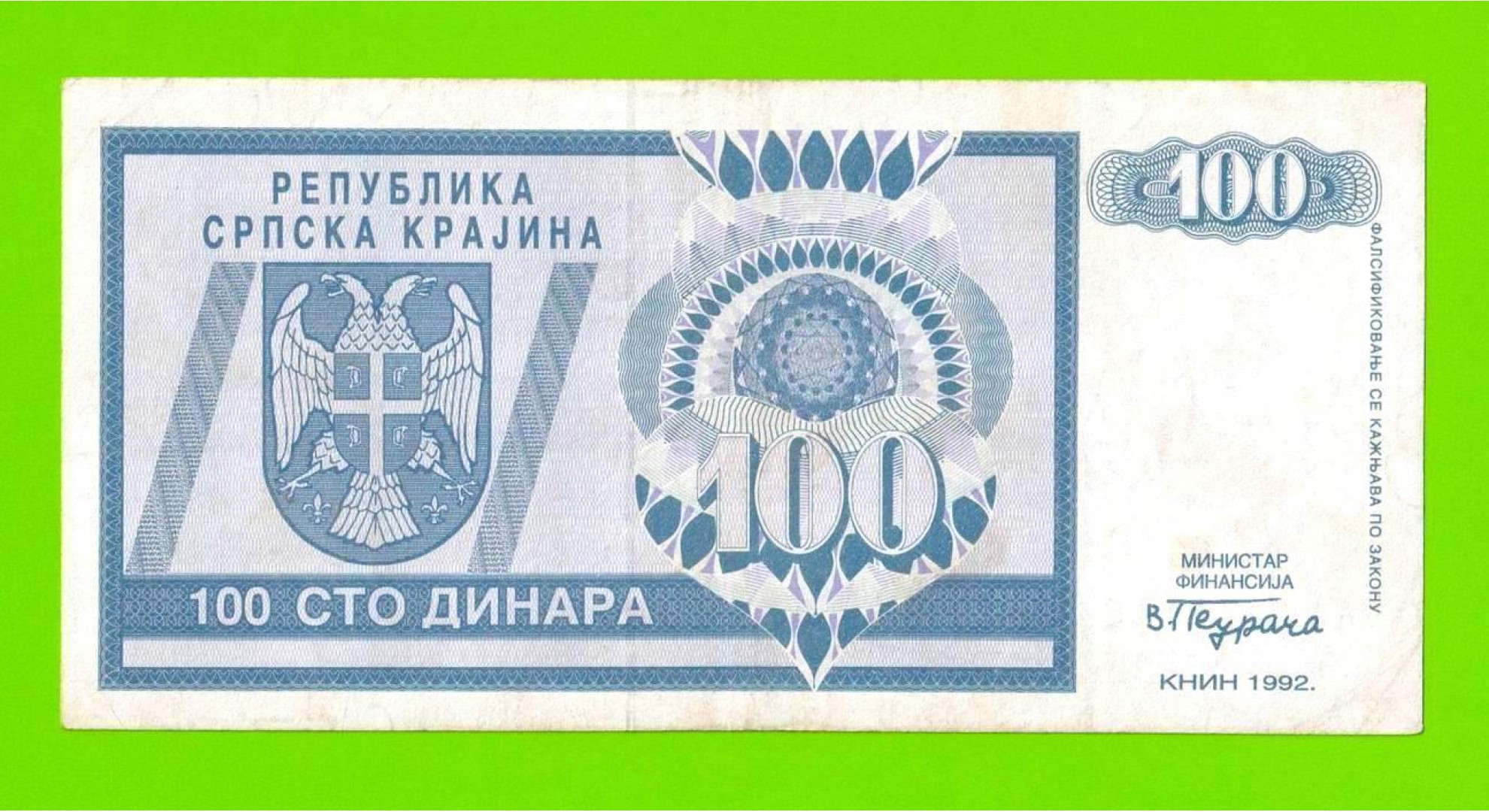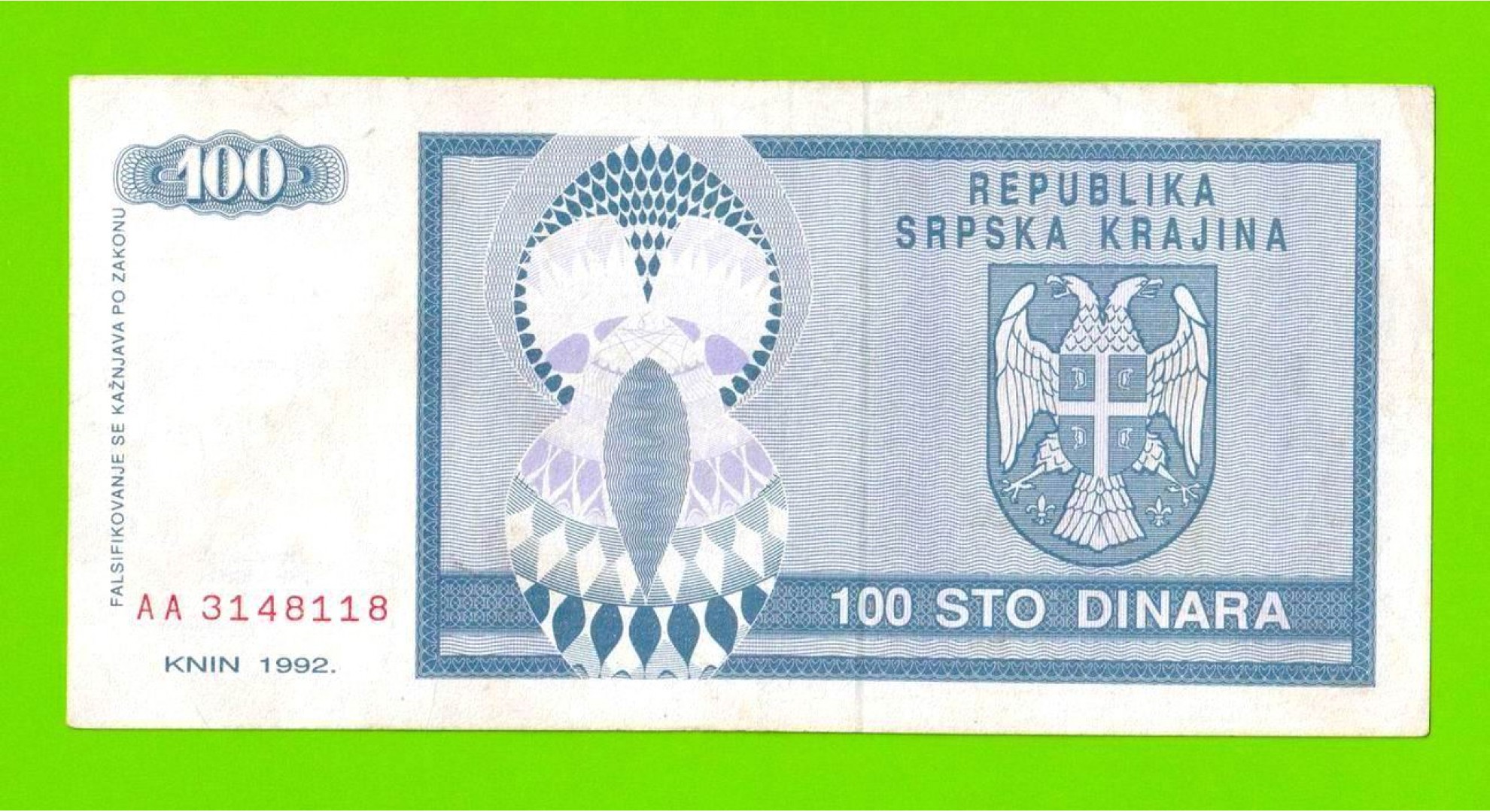 Босния и Герцеговина (Республика Сербская) - 100 динаров - 1992 (AA)