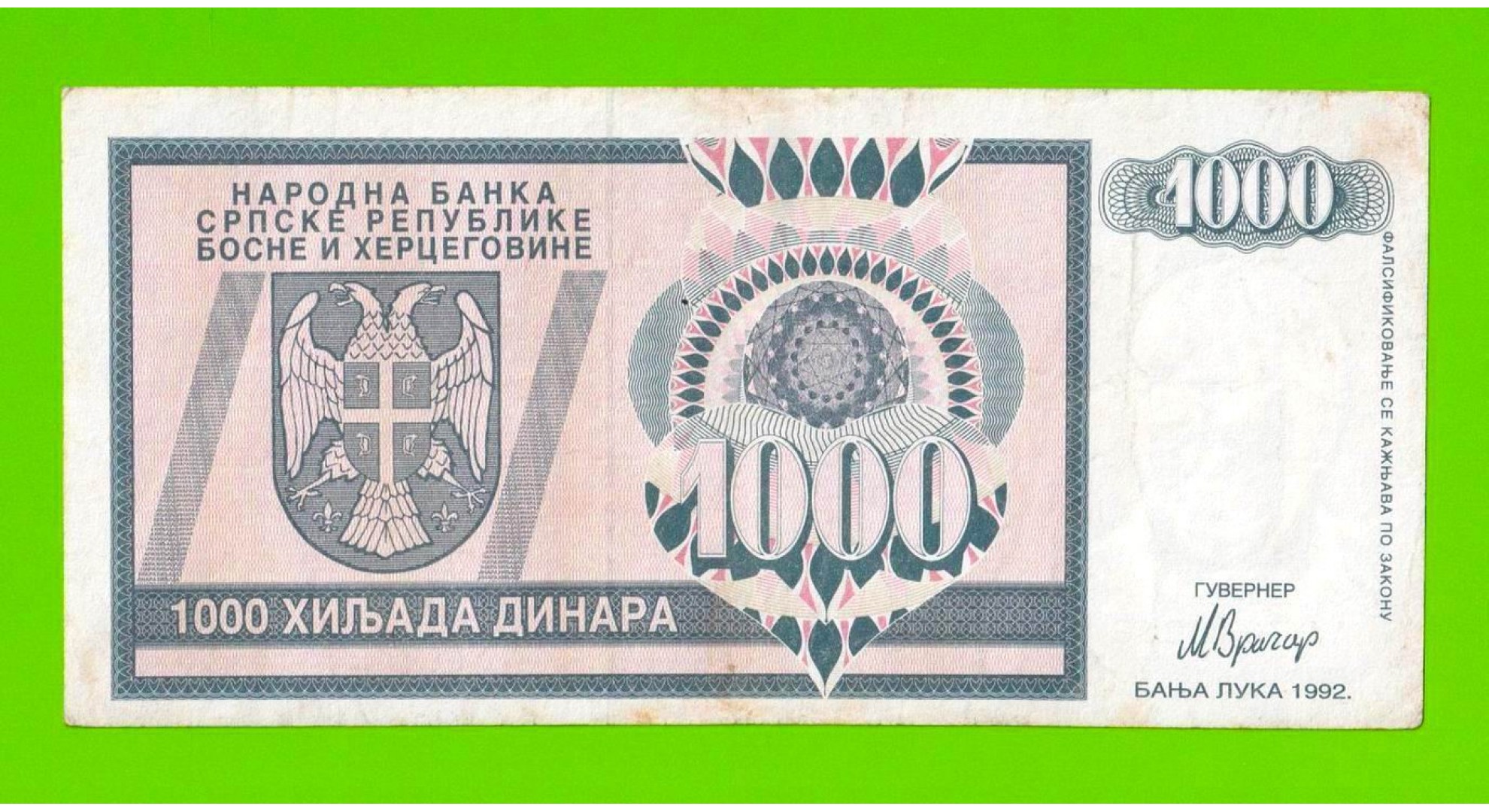 Босния и Герцеговина (Республика Сербская) - 1000 динаров - 1992 (AA)